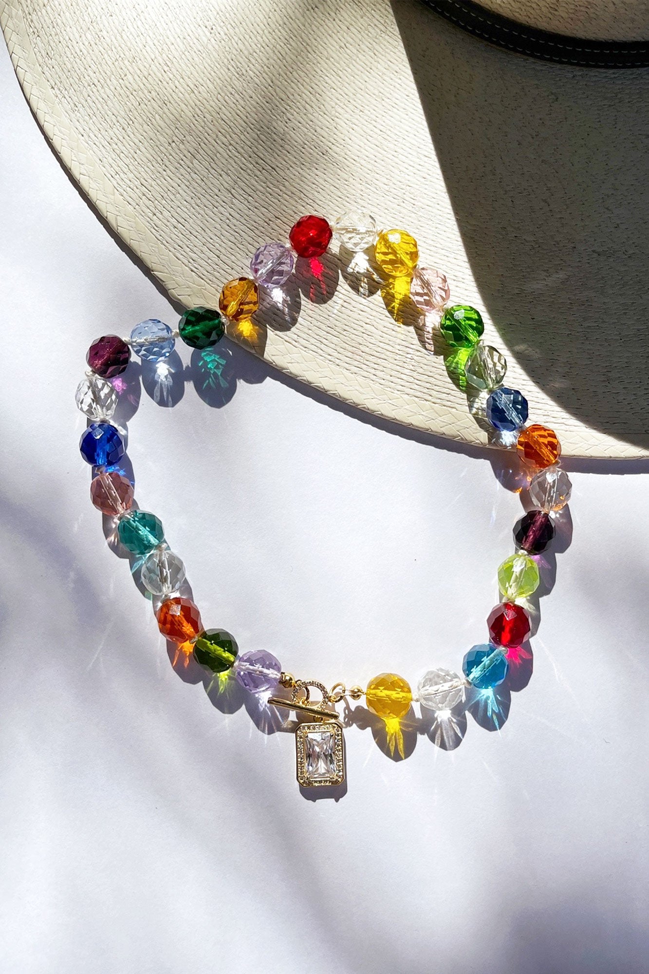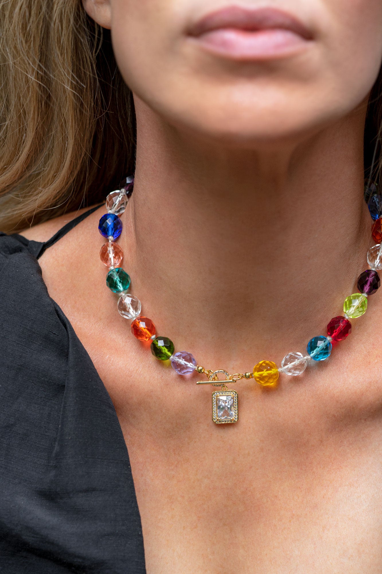 Embrace everyday elegance with the Leni Necklace, a fully beaded strand that connects at your clavicle with a golden toggle clasp attached to a showstopping rectangular charm. The Leni Necklace is your closet essential, answering your desire for luxury accessories that elevate with ease—adding feminine flair to your favorite vintage tee, or softening an office look with some modern charm. Leni comes in a rainbow of colors, and can be worn in a set along with the Leni Mini necklace for a layered, maximalist look.