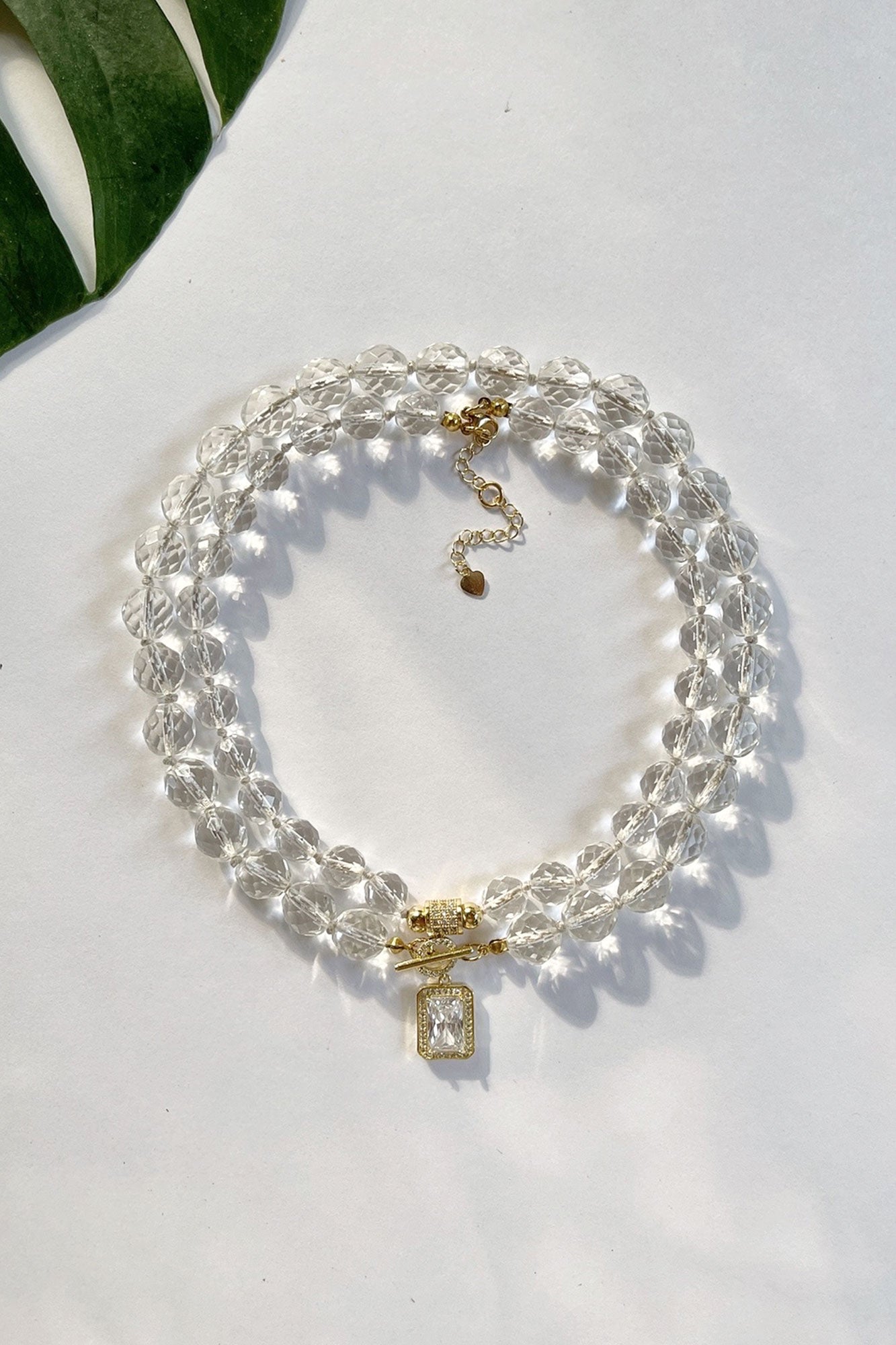 Czech Glass Beads, French Cotton Thread, Cubic Zirconia, 18K Gold Plated Brass Toggle Clasp / Nickel Free