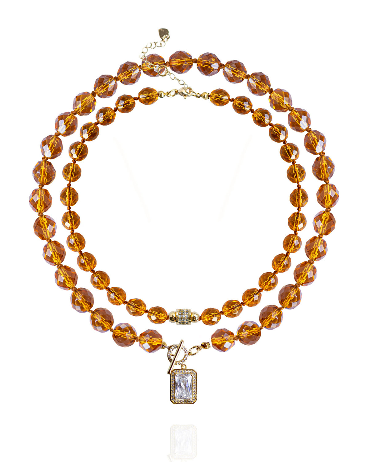 Czech Glass Beads, French Cotton Thread, Cubic Zirconia, 18K Gold Plated Brass Toggle Clasp / Nickel Free