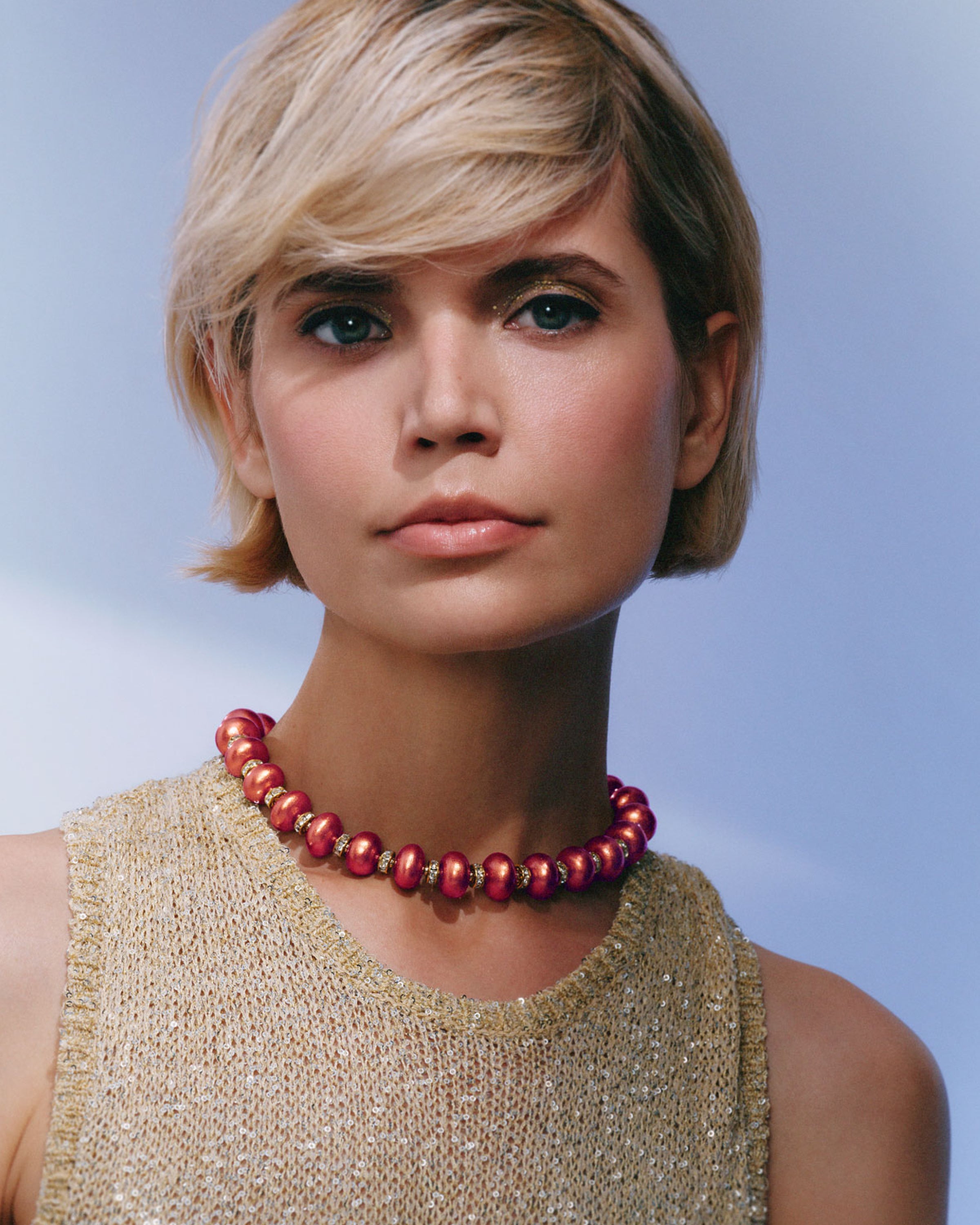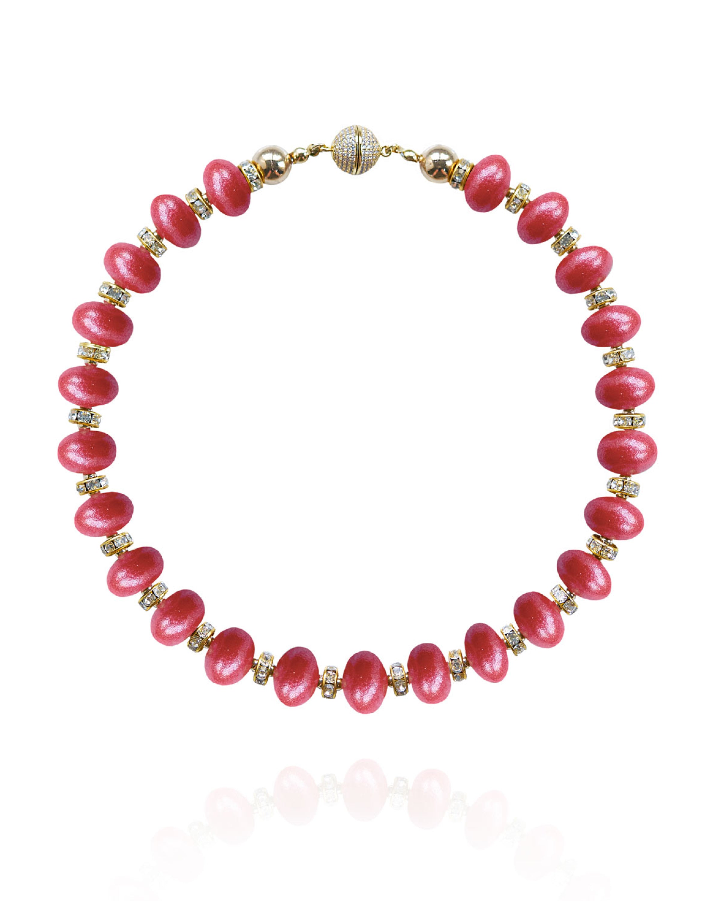 Allow your neckline to do the talking. Mika Necklace is an elegant balance of metallic sparkle and hand-painted luster. Her string of oval-shaped wooden beads is punctuated by Preciosa® Crystal Rondelles in between, and her weight feels like glamorous armor. Even her clasp exudes effortless sophistication—a magnetic, 18K gold-plated brass closure with sparkling cubic zirconias. If you’re searching for that show-stopping look, Mika Necklace can be mixed and matched with the Mika Bracelet and several earrings from the La Dolce Vita Collection.