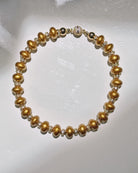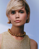 Allow your neckline to do the talking. Mika Necklace is an elegant balance of metallic sparkle and hand-painted luster. Her string of oval-shaped wooden beads is punctuated by Preciosa® Crystal Rondelles in between, and her weight feels like glamorous armor. Even her clasp exudes effortless sophistication—a magnetic, 18K gold-plated brass closure with sparkling cubic zirconias. If you’re searching for that show-stopping look, Mika Necklace can be mixed and matched with the Mika Bracelet and several earrings from the La Dolce Vita Collection.