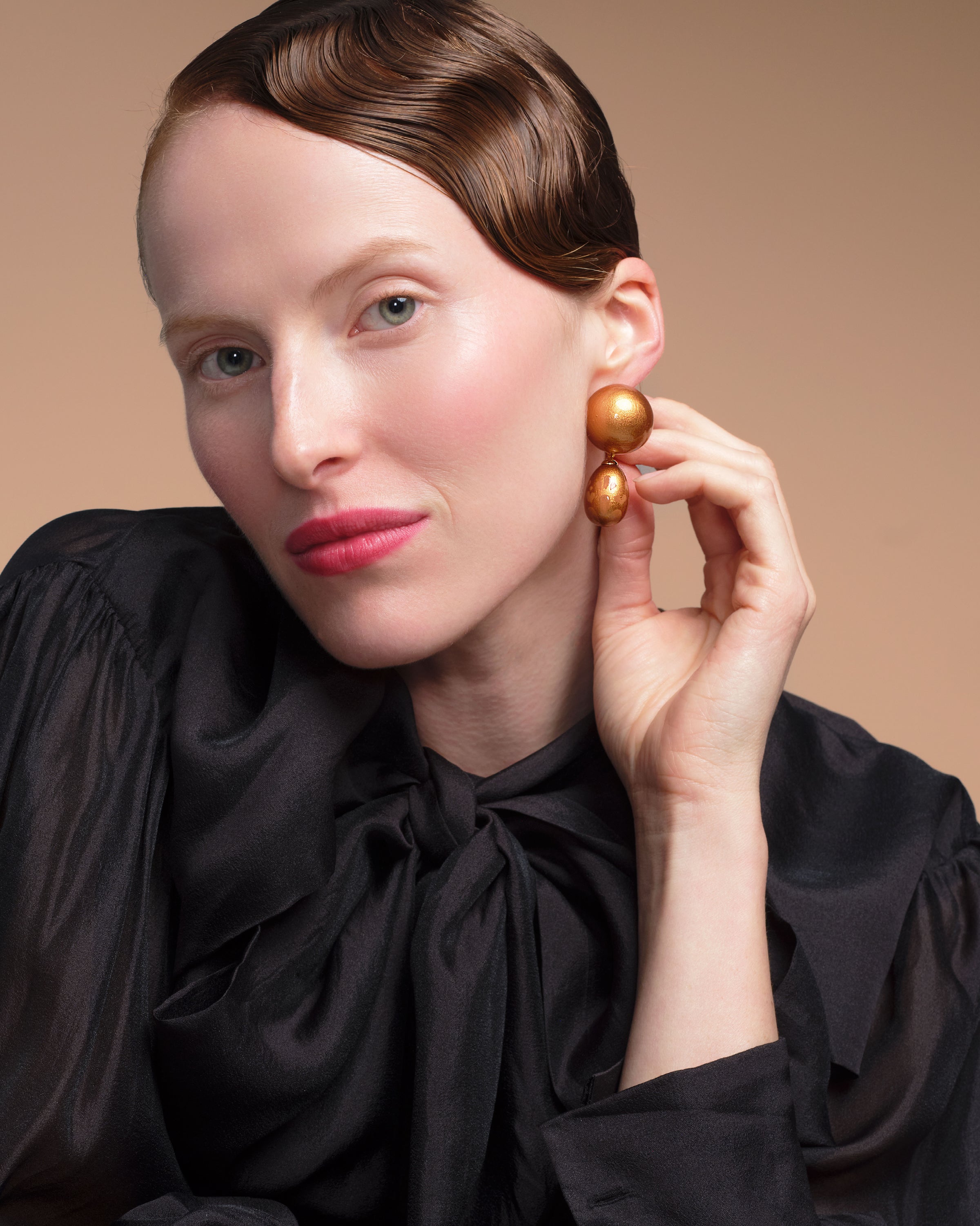 The Calista Earrings are a study in balance—smooth spheres anchored by sculpted drops that feel both modern and timeless. Each pair is hand-built to mirror quiet strength, with a silhouette that moves effortlessly from daylight to after dark. Subtle power, sealed in form.