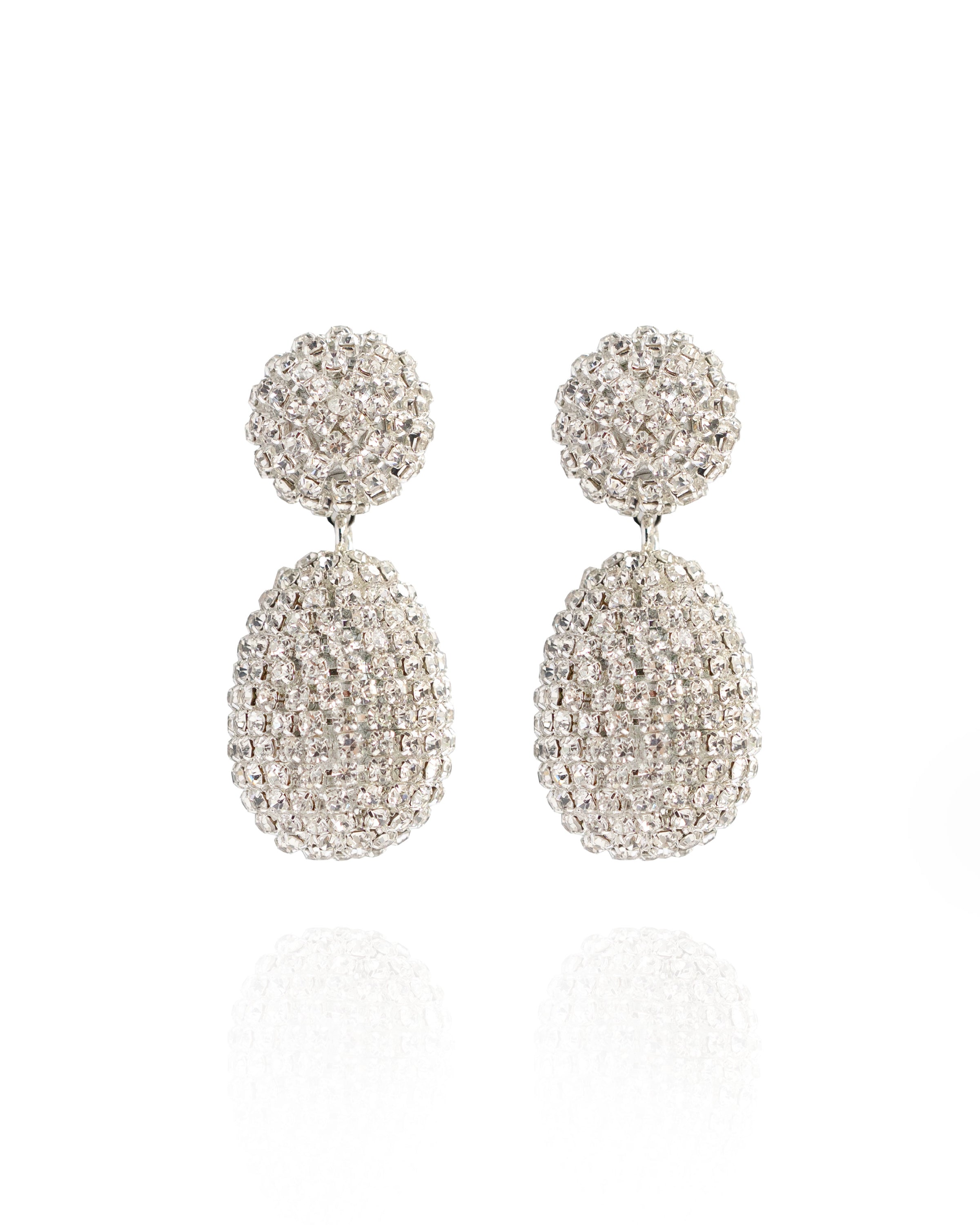 The Clio Earrings are pure ignition. Each curve drenched in crystal light, built to move like a mirrorball in human form. They don’t whisper luxury, they scream it in fluent sparkle. The kind of brilliance that makes cameras lose focus and strangers forget their names.