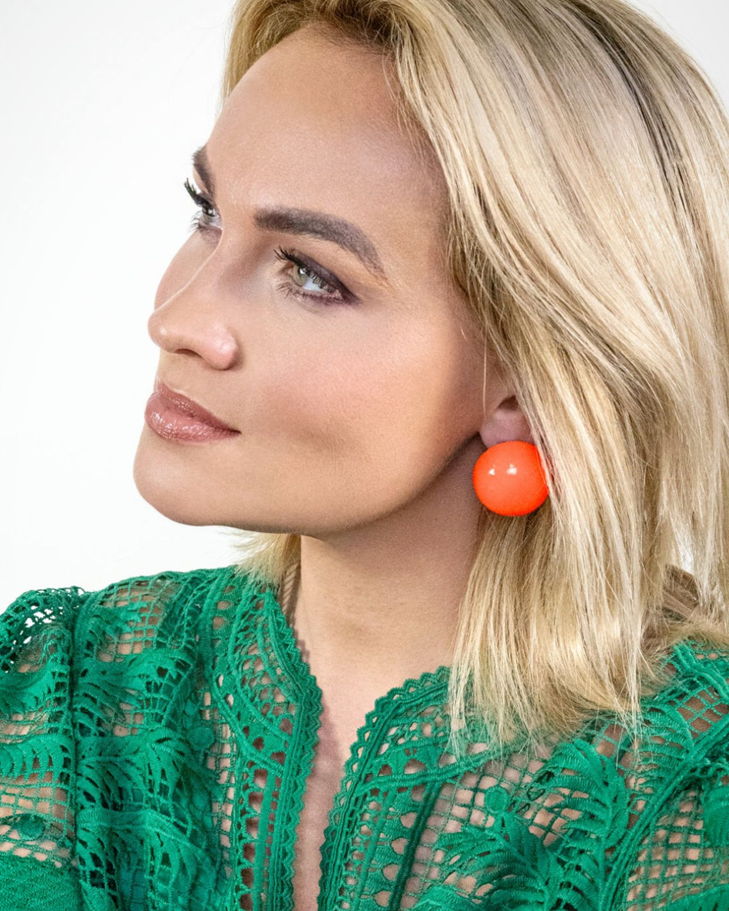 These statement studs are inspired by the Greek Goddess Gaia, mother of the earth and all life upon it. Gaia Earrings symbolize and honor the earth in a modern, memorable way. Her round shape and solid color give eye-catching contrast to clothing patterns and textures, so she pairs well with everything and brings the essence of life to every outfit. Representative of our planet, Gaia Earrings show the world how much you truly care for it.