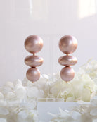 Nola Earrings wow with their postmodern playfulness, rich metallic tones and sculptural silhouette. Her dangle takes shape with three eye-catching spheres, varying in shape and descending in size, and hand-painted in an array of lustrous colors. Inspired by the late 1960s–early 1970s, Nola Earrings capture a beloved design era with elegant, modern flair. Her lustrous sheen and unique shape are designed for the woman who wishes to stand out—and truly embraces La Dolce Vita.