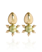 Is your wardrobe one of clean lines, tactile fabrics and metallic accents? Tulia Earrings are the ideal match for your classic style, darling. A smooth, hand-painted wooden center is surrounded by a ring of 18k gold plated brass beads—like the golden rays of a sunburst. This visual interest is balanced by a chic, teardrop-shaped 18K gold-plated recycled brass post. Tulia Earrings come in a curated selection of rich, modern neutral colors. Designed to elevate every ensemble, from a linen sundress to tailored trousers, Tulia is your daily dose of La Dolce Vita.