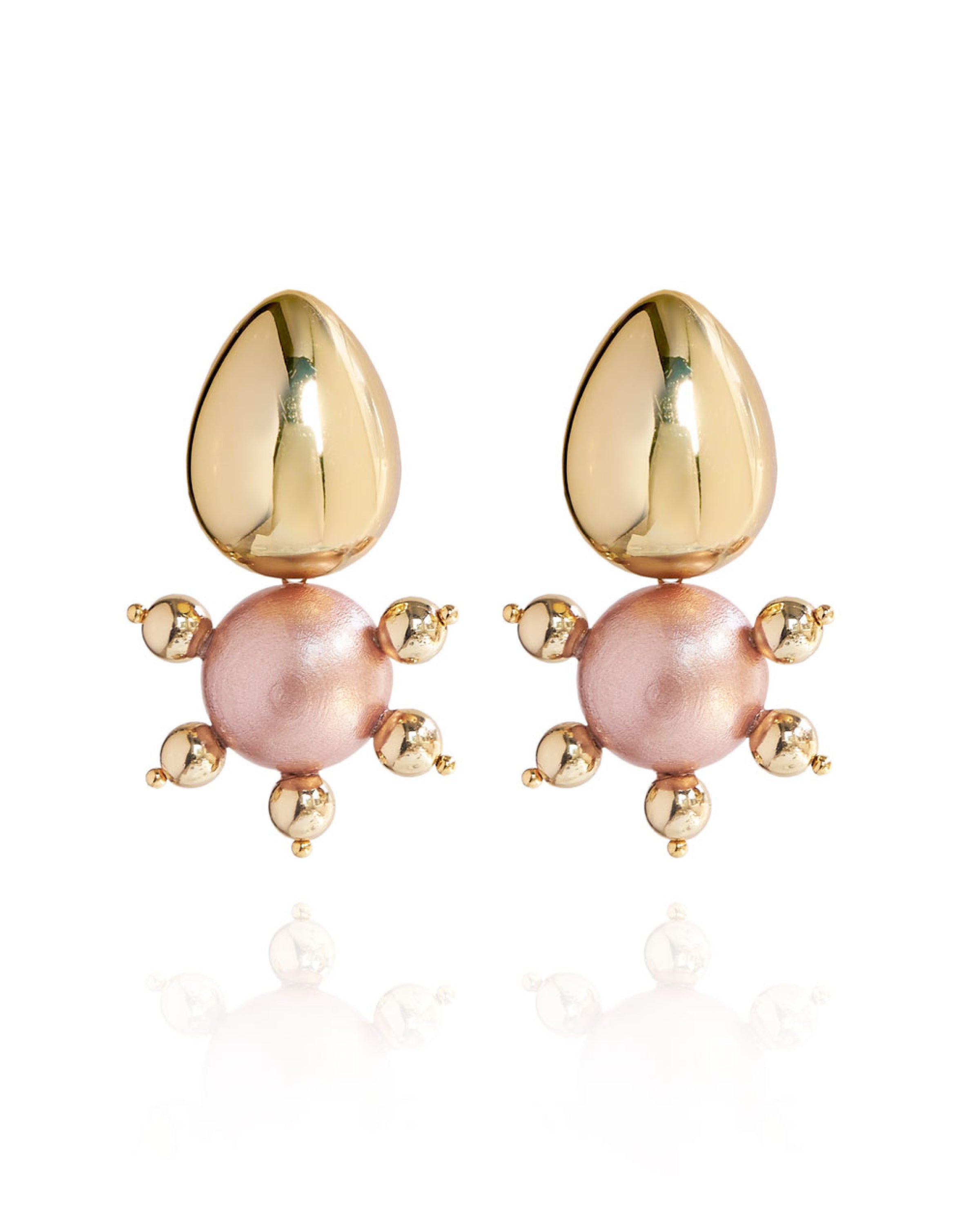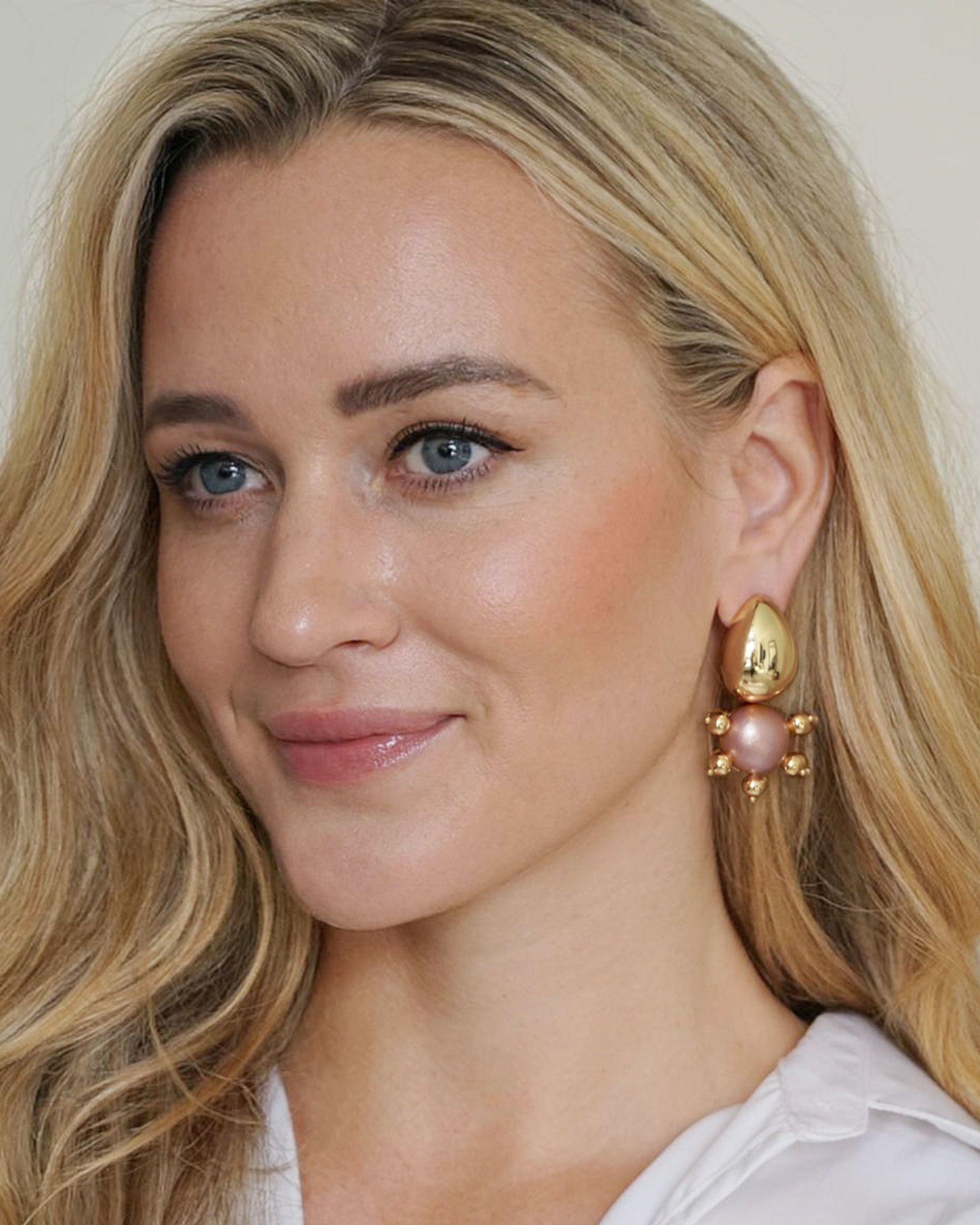 Is your wardrobe one of clean lines, tactile fabrics and metallic accents? Tulia Earrings are the ideal match for your classic style, darling. A smooth, hand-painted wooden center is surrounded by a ring of 18k gold plated brass beads—like the golden rays of a sunburst. This visual interest is balanced by a chic, teardrop-shaped 18K gold-plated recycled brass post. Tulia Earrings come in a curated selection of rich, modern neutral colors. Designed to elevate every ensemble, from a linen sundress to tailored trousers, Tulia is your daily dose of La Dolce Vita.