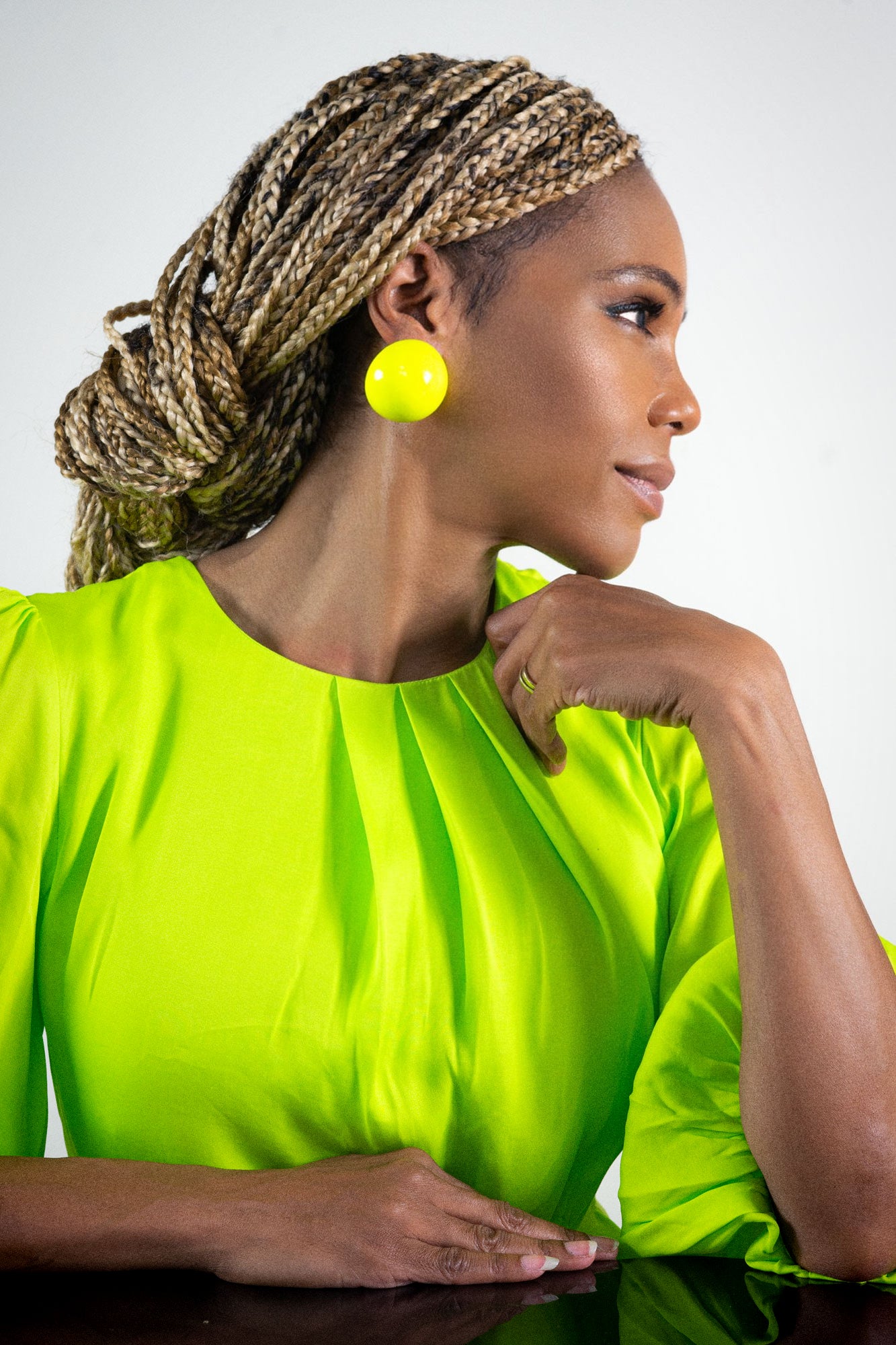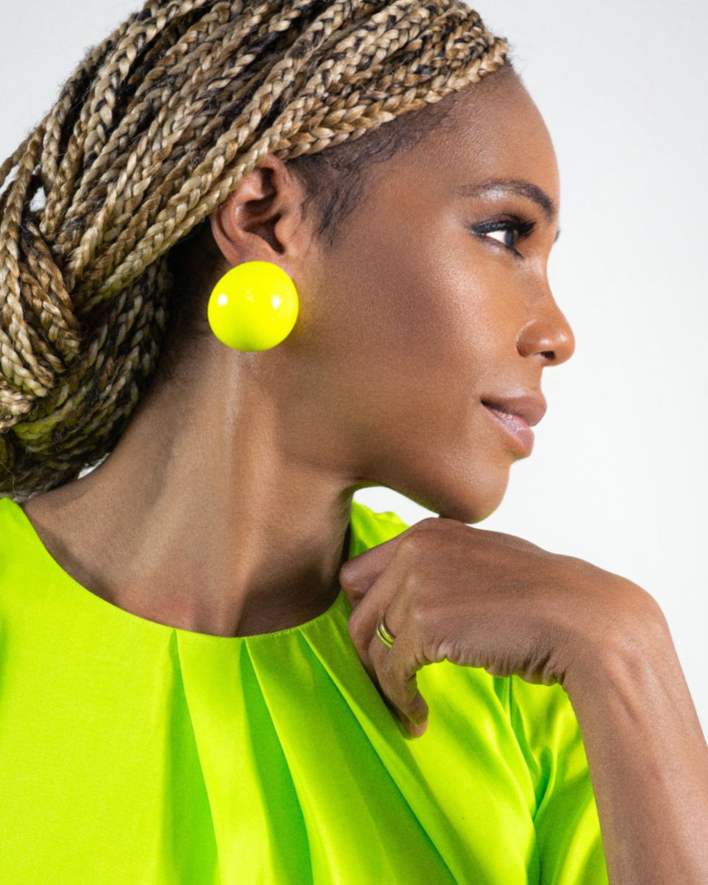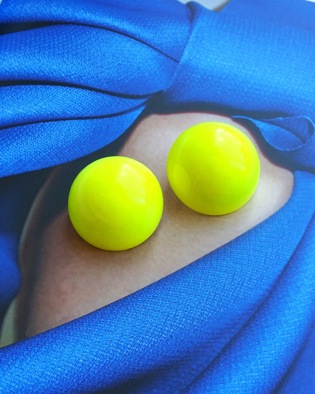 These statement studs are inspired by the Greek Goddess Gaia, mother of the earth and all life upon it. Gaia Earrings symbolize and honor the earth in a modern, memorable way. Her round shape and solid color give eye-catching contrast to clothing patterns and textures, so she pairs well with everything and brings the essence of life to every outfit. Representative of our planet, Gaia Earrings show the world how much you truly care for it.