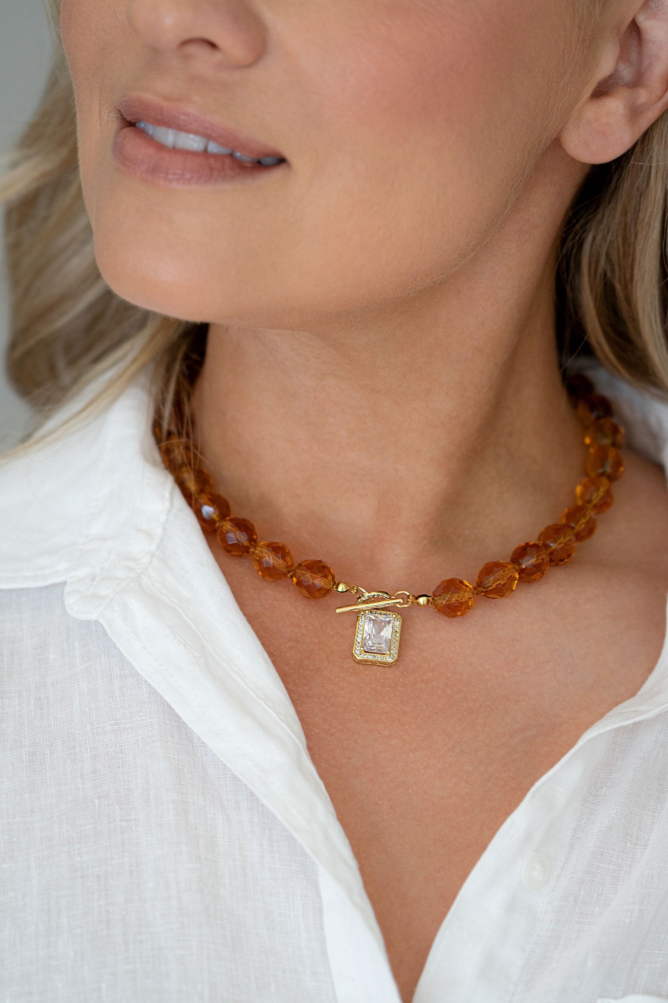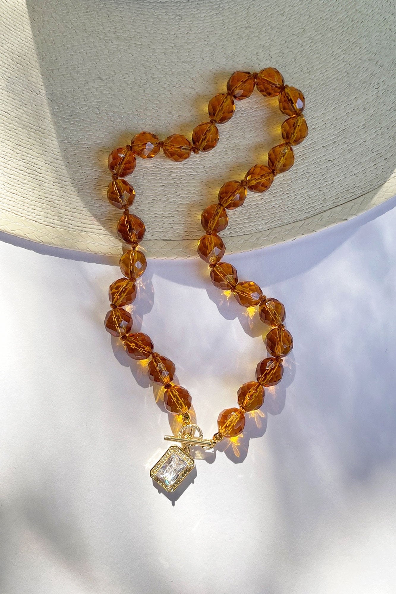 Embrace everyday elegance with the Leni Necklace, a fully beaded strand that connects at your clavicle with a golden toggle clasp attached to a showstopping rectangular charm. The Leni Necklace is your closet essential, answering your desire for luxury accessories that elevate with ease—adding feminine flair to your favorite vintage tee, or softening an office look with some modern charm. Leni comes in a rainbow of colors, and can be worn in a set along with the Leni Mini necklace for a layered, maximalist look.