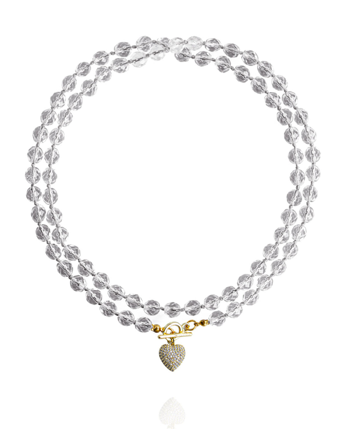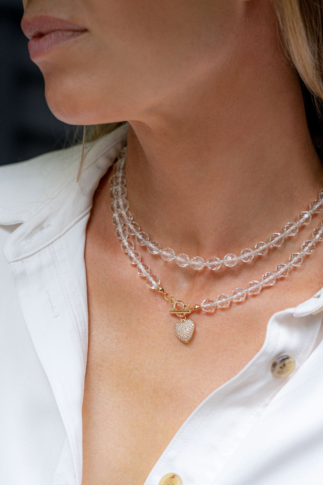 Embrace everyday elegance with the Leni Loop Necklace, an extra long beaded strand with a golden heart-shaped clasp, designed to be looped twice around the neck. The Leni Loop Necklace is your closet essential, answering your desire for luxury accessories that elevate with ease—adding feminine flair to your favorite vintage tee, or softening an office look with some modern charm.