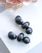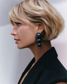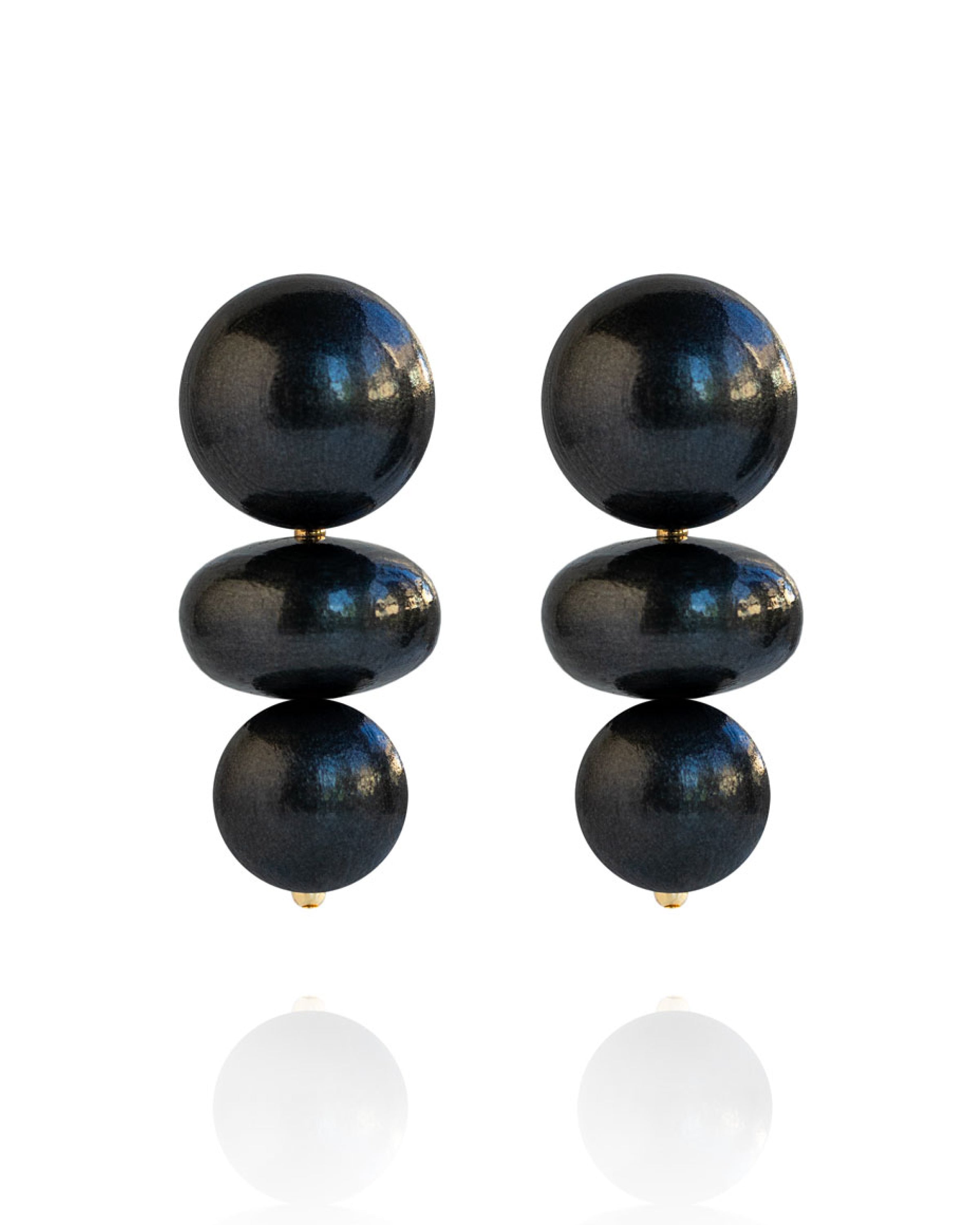 Nola Earrings wow with their postmodern playfulness, rich metallic tones and sculptural silhouette. Her dangle takes shape with three eye-catching spheres, varying in shape and descending in size, and hand-painted in an array of lustrous colors. Inspired by the late 1960s–early 1970s, Nola Earrings capture a beloved design era with elegant, modern flair. Her lustrous sheen and unique shape are designed for the woman who wishes to stand out—and truly embraces La Dolce Vita.