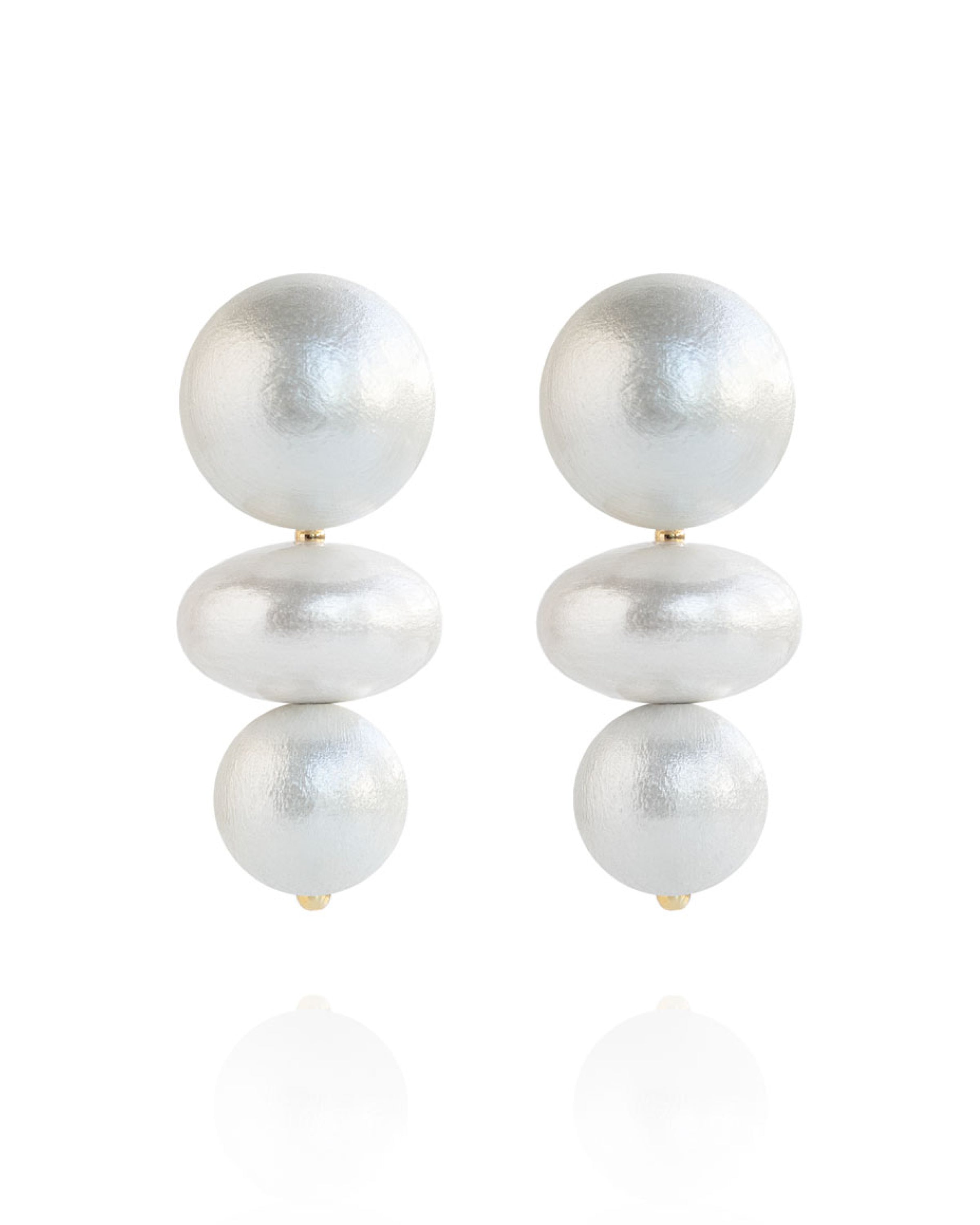 Nola Earrings wow with their postmodern playfulness, rich metallic tones and sculptural silhouette. Her dangle takes shape with three eye-catching spheres, varying in shape and descending in size, and hand-painted in an array of lustrous colors. Inspired by the late 1960s–early 1970s, Nola Earrings capture a beloved design era with elegant, modern flair. Her lustrous sheen and unique shape are designed for the woman who wishes to stand out—and truly embraces La Dolce Vita.