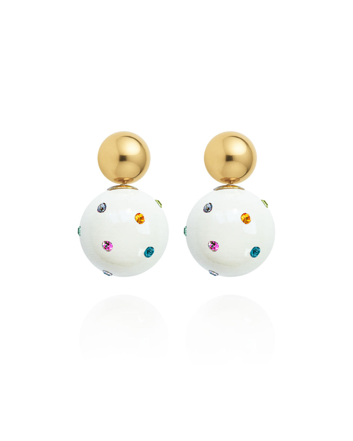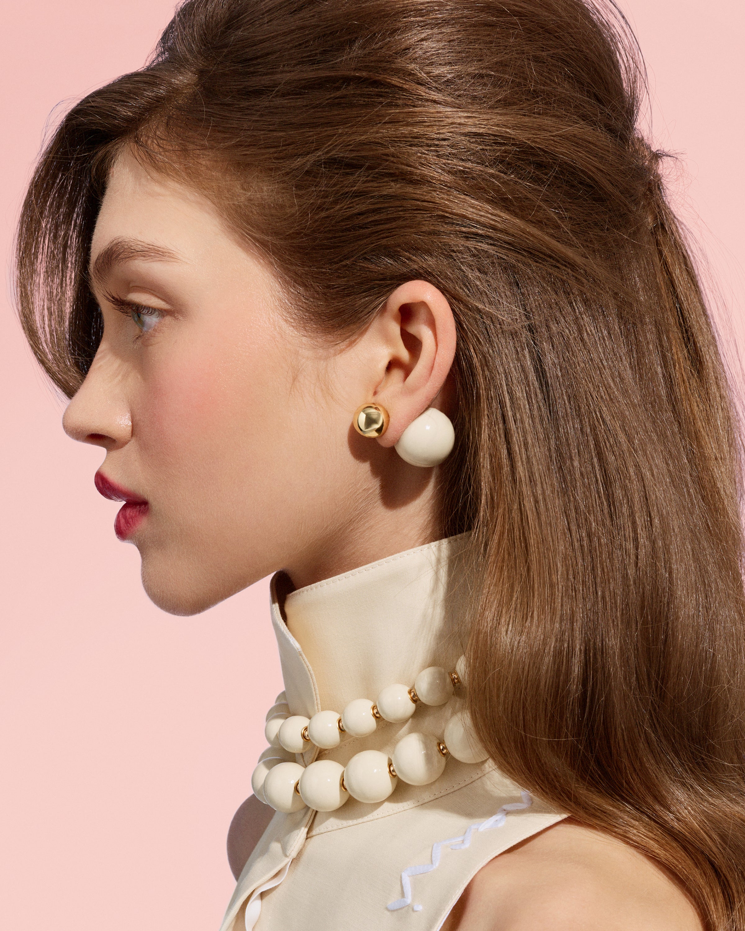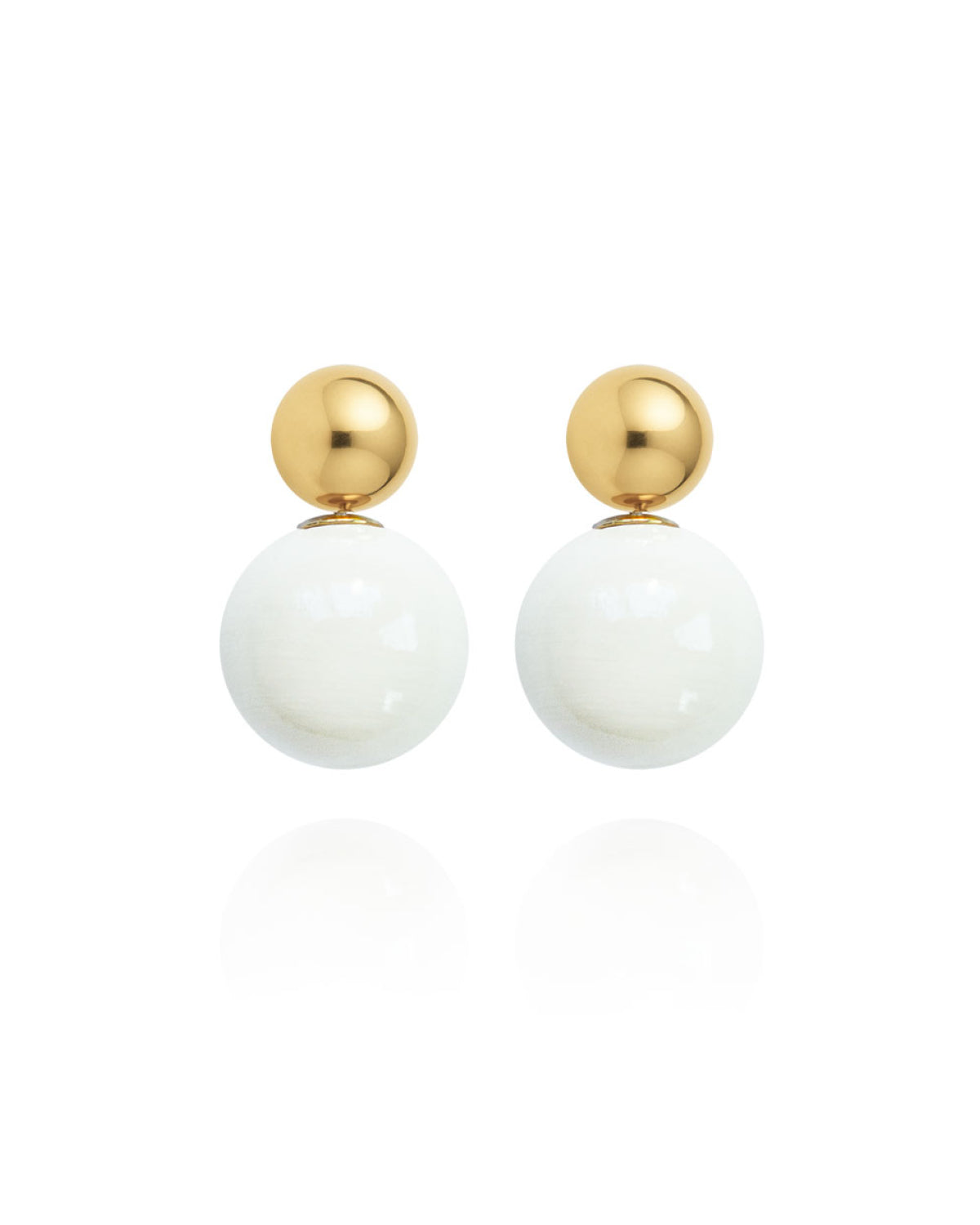 Cute from every angle. The Lilou Earrings feature a glossy front-facing bead and a larger, high-shine ball that fastens from the back—creating a double-orb silhouette that’s unexpectedly chic. This sculptural twist on classic studs adds just the right amount of charm and curiosity. Lightweight, versatile, and ready to flirt. Wear them when you want something playful—but still polished.