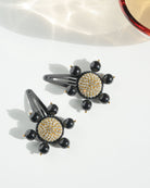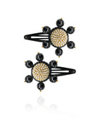 There is no such thing as bad hair days, darling. Go for classic glam with the Jolie Barrettes, a pair of shining hair clips with a starburst statement. An extravagant rhinestone center punctuated by beaded rays make Jolie Barrettes the loud, lavish accessory you need to boost a fresh blowout or help slick back day three strands. Get to know the sister pieces in this collection, too—the Jolie Necklace, the Jolie Lapel Pin and Jolie Earrings.