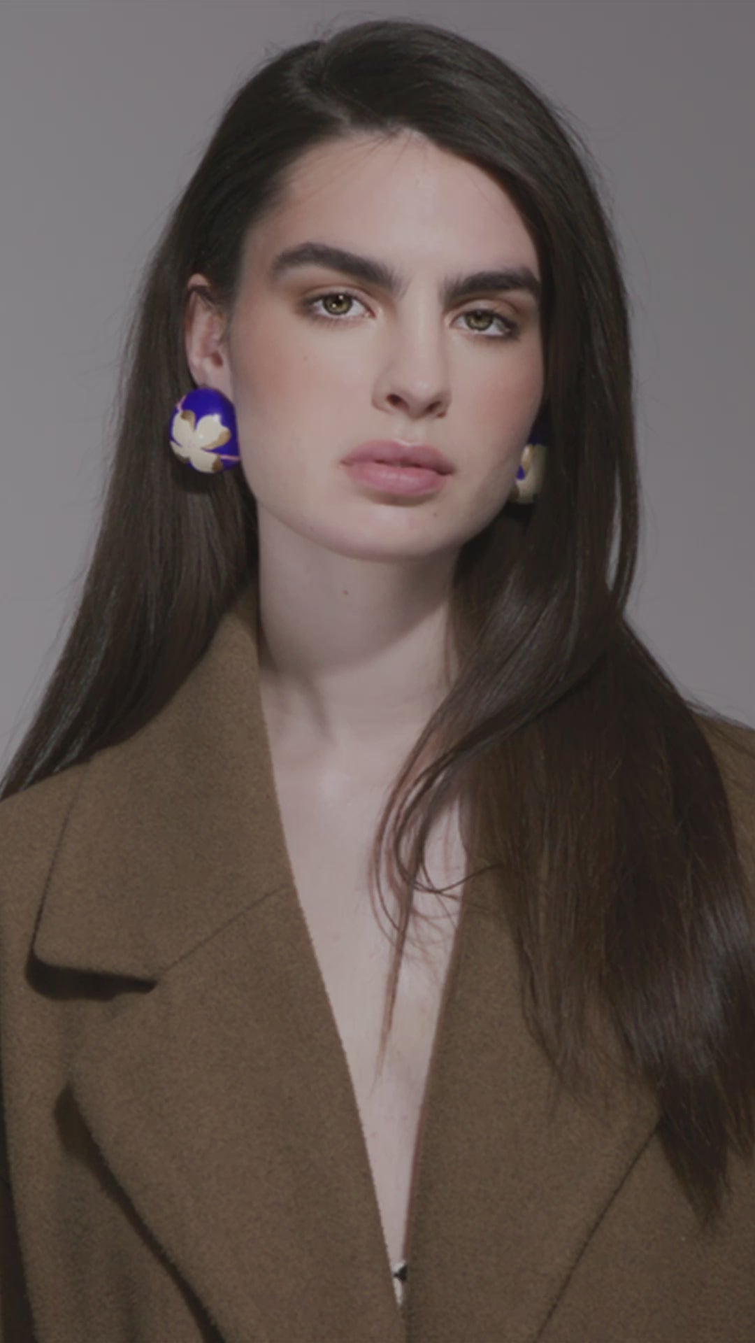 Modern and memorable, Gaia Floral Earrings are oversized statement studs with hand-painted floral motifs and gold foiling. No two earrings are the same—so you wear a one-of-a-kind work of art. Gaia Floral Earrings’ smooth, spherical shape also brings contrast to clothing textures for a polished finishing touch. Sustainable, nature-inspired style has never been so sophisticated.
