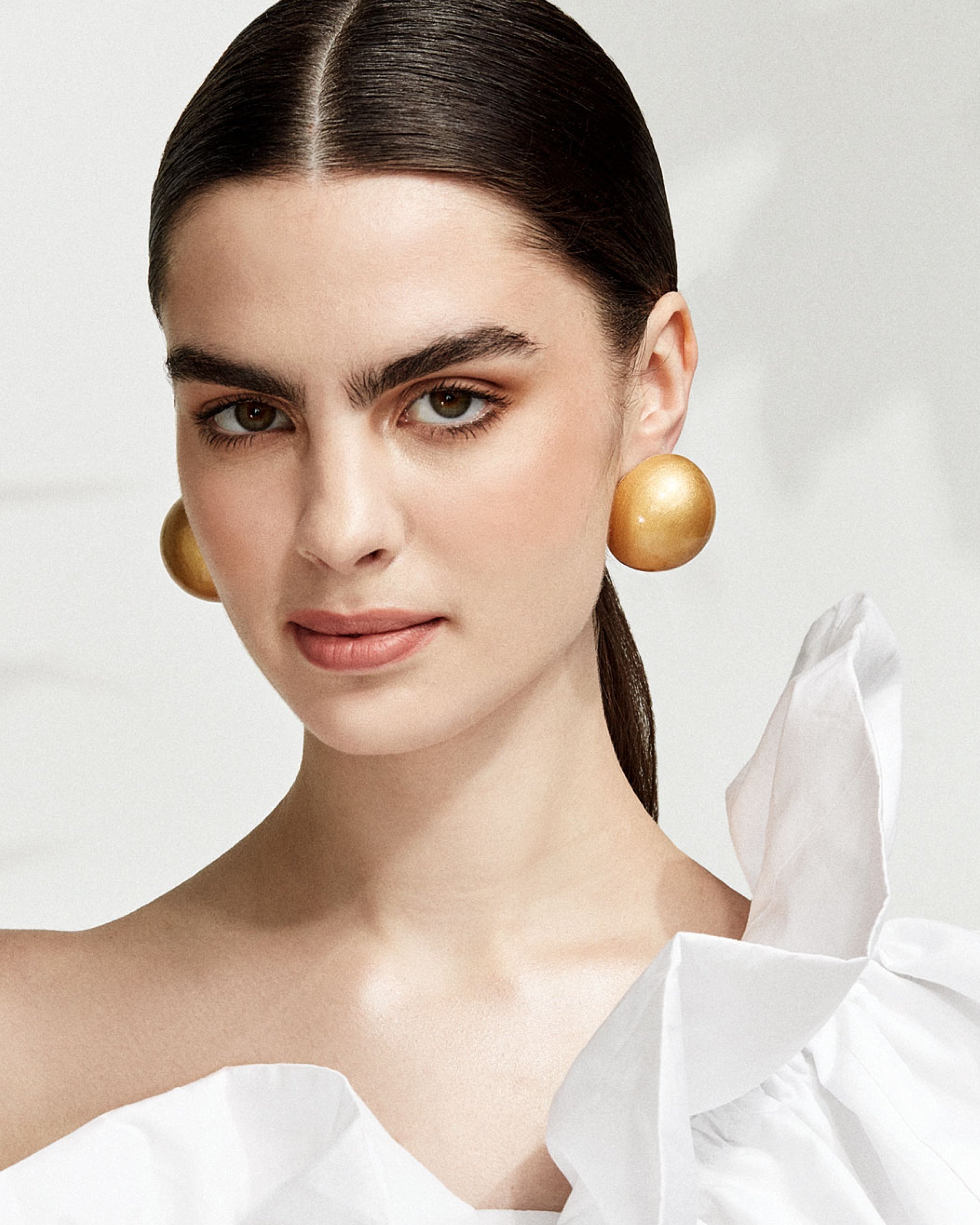 Lovers of sparkle will go starry eyed for Gaia Glam Earrings in gold. These statement studs are inspired by the Greek Goddess Gaia, mother of the earth and all life upon it. Gaia Glam Earrings symbolize and honor the earth in a modern, memorable way. Her round shape and opulent sparkle give eye-catching contrast to clothing patterns and textures, so she pairs well with everything and brings the essence of life to every outfit. Representative of our planet, Gaia Glam Earrings show the world how much you truly care for it. Prefer to wear your sparkle around your neck? Shop the Gaia Glam Necklace.