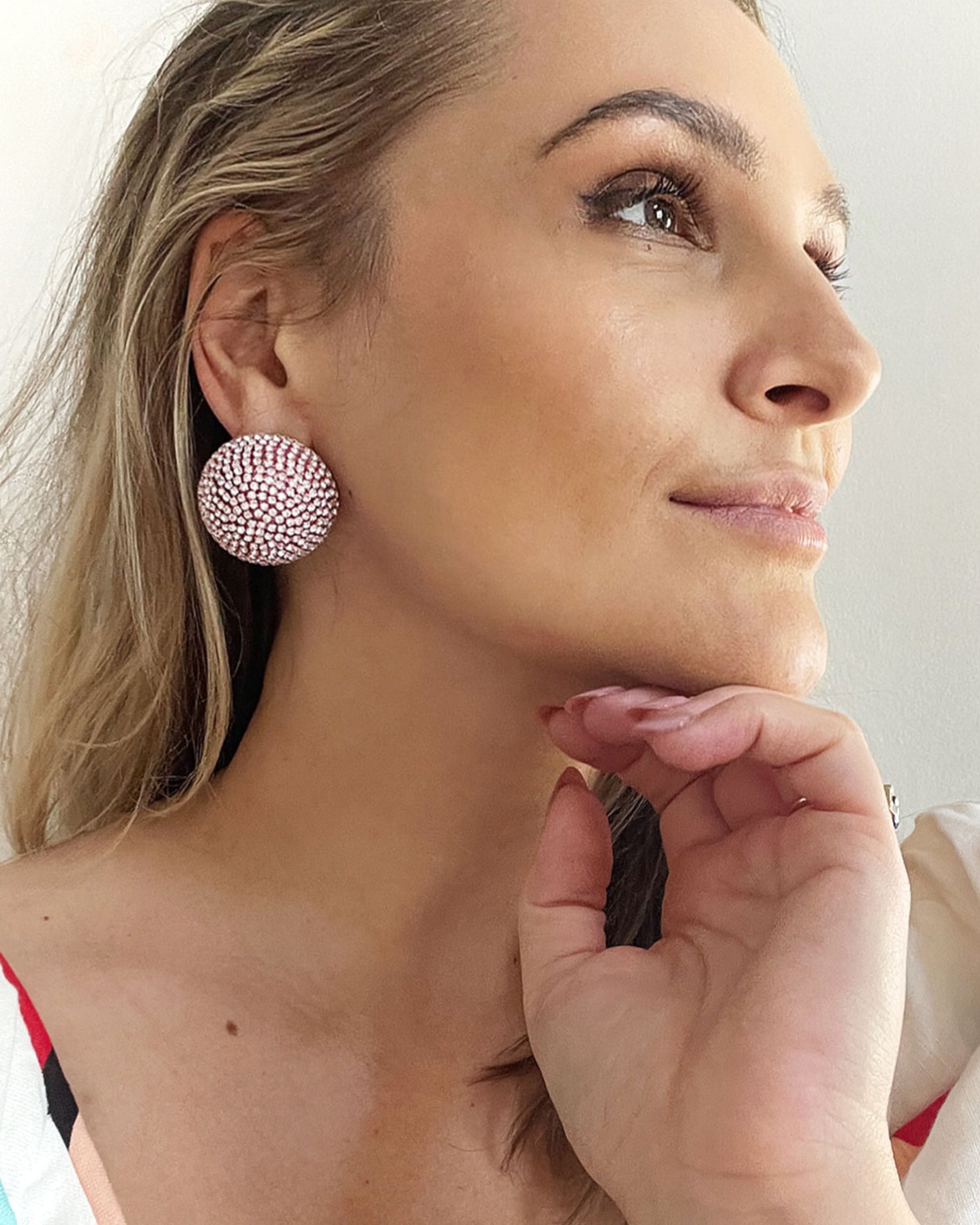 Lovers of sparkle will go starry eyed for Gaia Glam Earrings in silver or gold. These statement studs are inspired by the Greek Goddess Gaia, mother of the earth and all life upon it. Gaia Glam Earrings symbolize and honor the earth in a modern, memorable way. Her round shape and opulent sparkle give eye-catching contrast to clothing patterns and textures, so she pairs well with everything and brings the essence of life to every outfit. Representative of our planet, Gaia Glam Earrings show the world how much you truly care for it. Prefer to wear your sparkle around your neck? Shop the Gaia Glam Necklace.