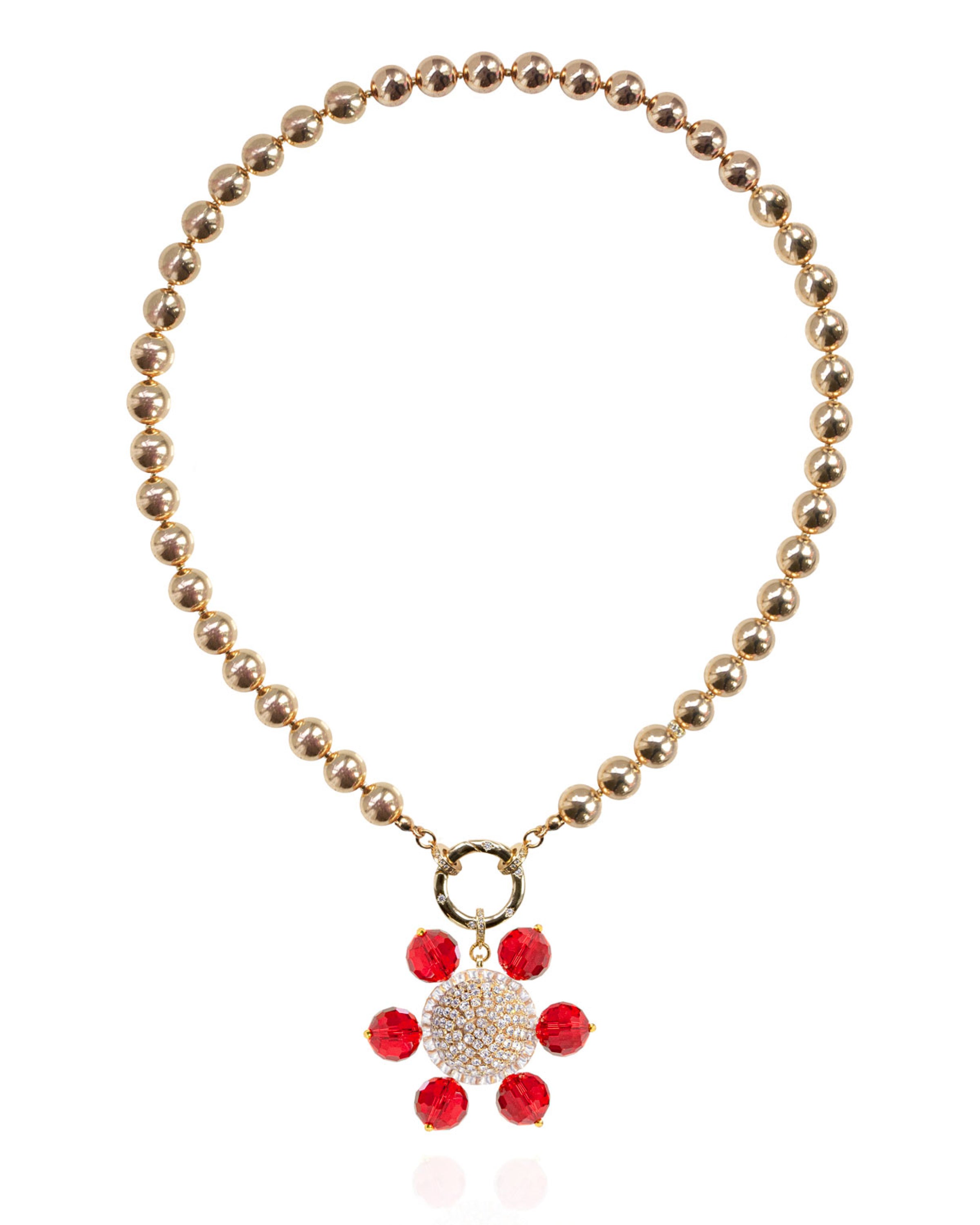 Classic glam is calling, darling. The Jolie Necklace is loud and lavish—a heavy hematite strand that feels like glamorous armor. At her center sits a starburst made of a wooden base bedecked with glittering rhinestones, punctuated by rays of shining beads in a color of your choice. Channel your inner Audrey and step out in the statement-making Jolie Necklace, and build a timeless collection with Jolie Earrings, the Jolie Lapel Pin and Jolie Barrettes.