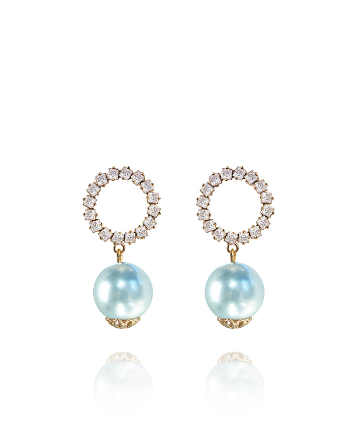 Glass Pearls, Cubic Zirconias, 18k Gold Plated Brass Hardware