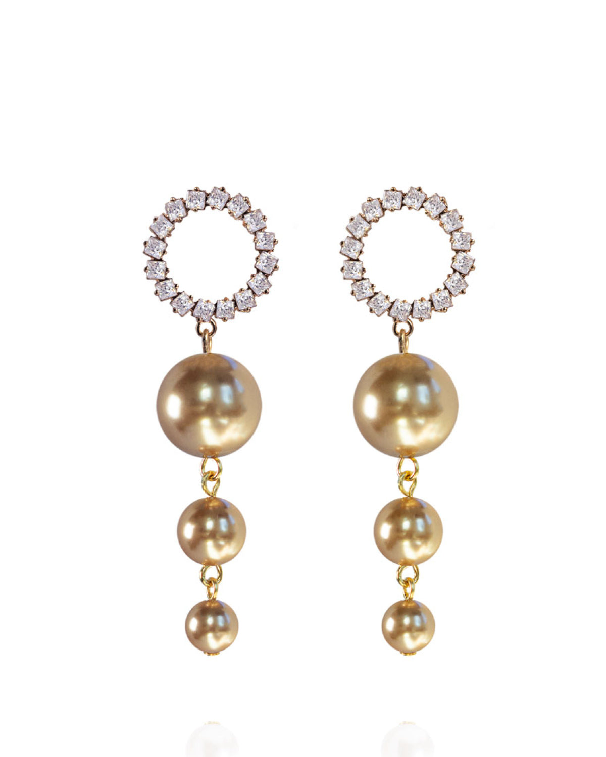 Glass Pearls, Cubic Zirconias, 18k Gold Plated Brass Hardware