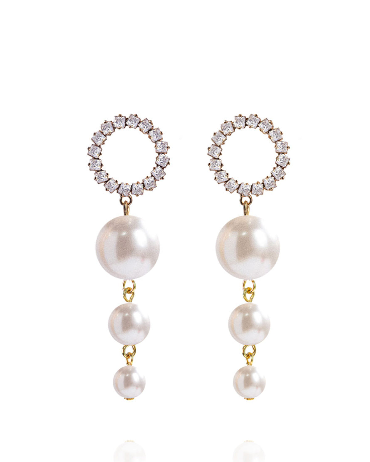 Glass Pearls, Cubic Zirconias, 18k Gold Plated Brass Hardware