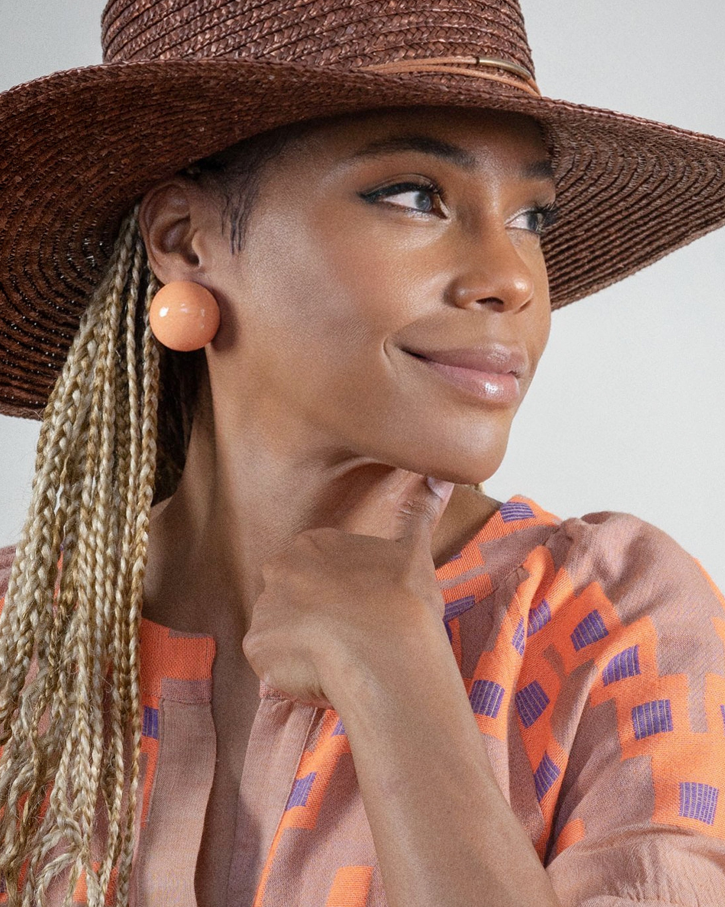 These statement studs are inspired by the Greek Goddess Gaia, mother of the earth and all life upon it. Gaia Earrings symbolize and honor the earth in a modern, memorable way. Her round shape and solid color give eye-catching contrast to clothing patterns and textures, so she pairs well with everything and brings the essence of life to every outfit. Representative of our planet, Gaia Earrings show the world how much you truly care for it.