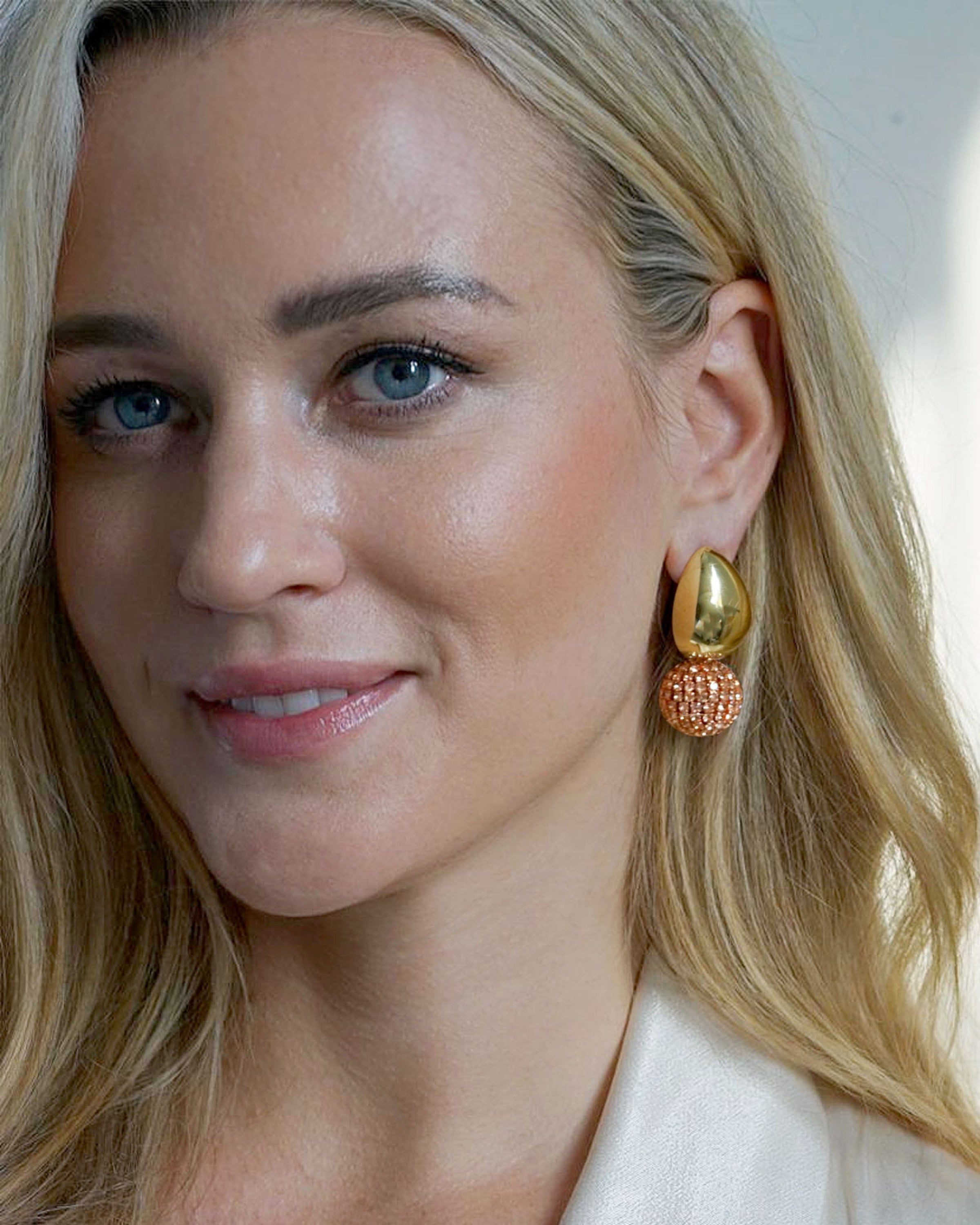 Tulia Glam Earrings are for the fashion go-getters, inspired by the glamorous jetset lifestyle of the late 1960s–early 1970s. An even sparklier version of our Tulia Jet Earrings, Tulia Glam Earrings trade a spotted charm for a crystal rhinestone-covered charm—so you can catch every light and flight in style. Anchored by a teardrop-shaped recycled brass post, Tulia balances European elegance with Hollywood flair. She’s got it all, just like you. That’s La Dolce Vita, baby.
