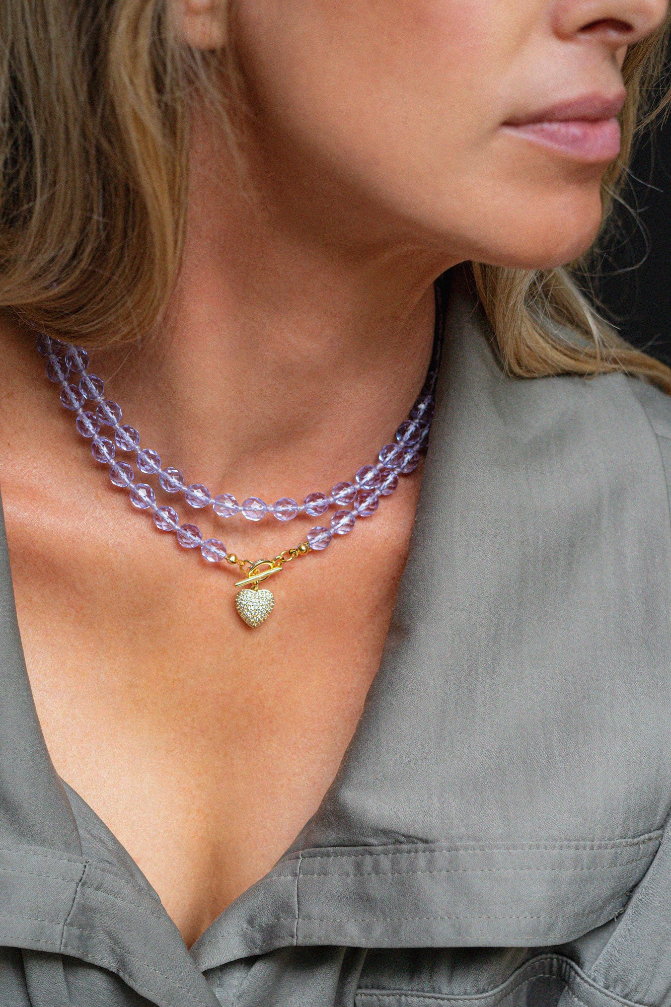 Embrace everyday elegance with the Leni Loop Necklace, an extra long beaded strand with a golden heart-shaped clasp, designed to be looped twice around the neck. The Leni Loop Necklace is your closet essential, answering your desire for luxury accessories that elevate with ease—adding feminine flair to your favorite vintage tee, or softening an office look with some modern charm.