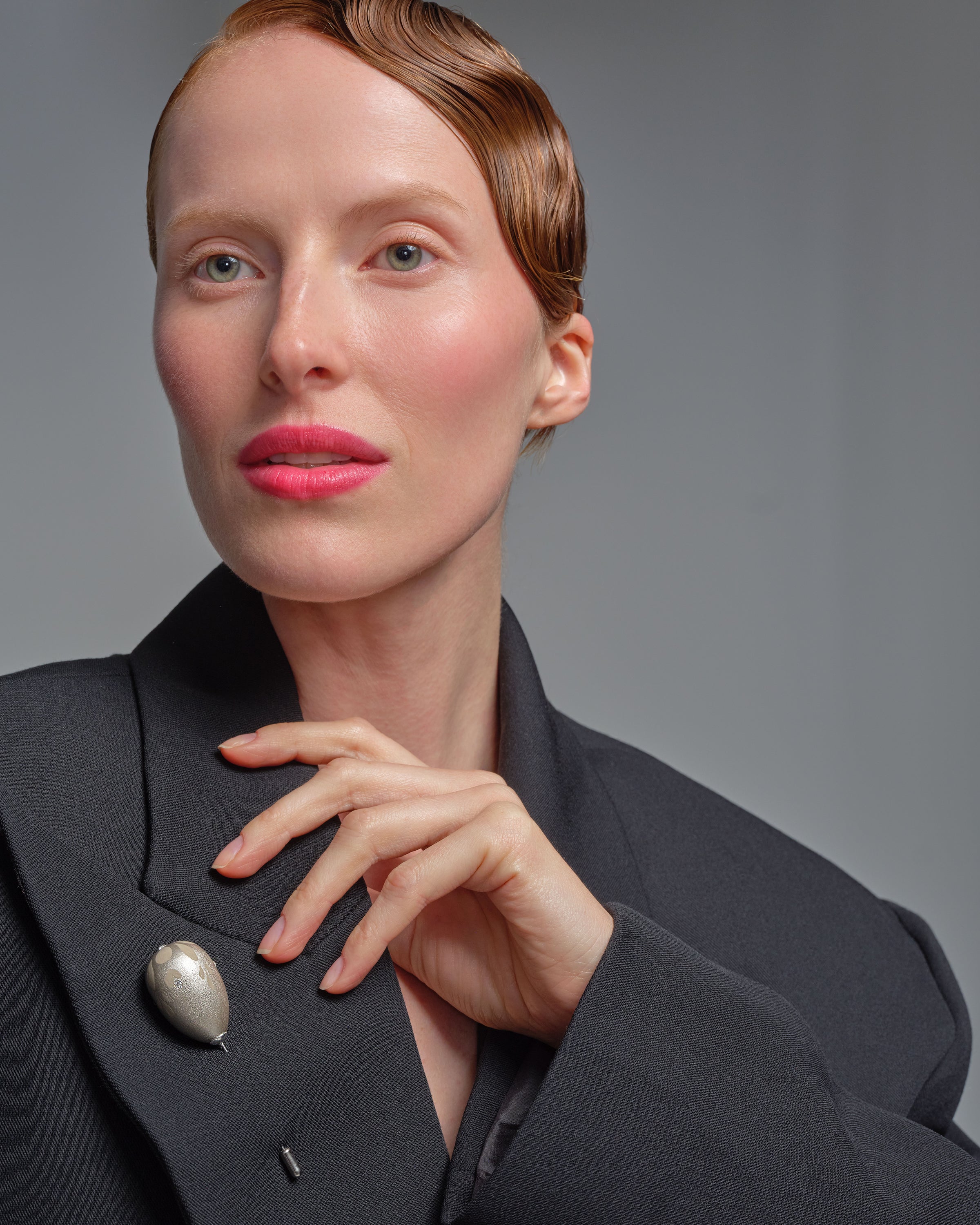 Inspired by our Nova Earrings, the Nova Lapel Pin transforms their sculptural beauty into a luminous accent for jackets, blazers, or dresses. Each piece is hand-painted with delicate floral motifs and finished with a crystal that catches the light like a secret. It’s the kind of detail that turns refinement into power.