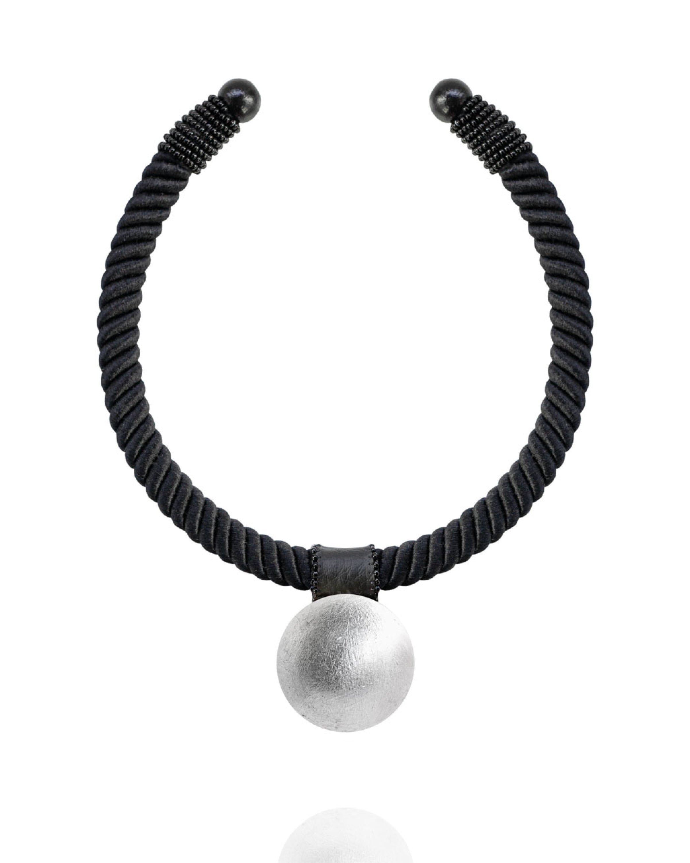 Lovers of sparkle will go starry eyed for the Gaia Glam Necklace. We took the spherical, statement-making power of our Gaia Earrings, dressed it in dazzling rhinestones, and affixed it as a pendant to a rope-wrapped choker cuff. The result is both opulent and texturally dynamic. Choose from a silver or gold centerpiece and allow the Gaia Glam Necklace to bring the essence of life to every outfit—much like her namesake, the Greek goddess Gaia, who mothered earth and all life upon it.