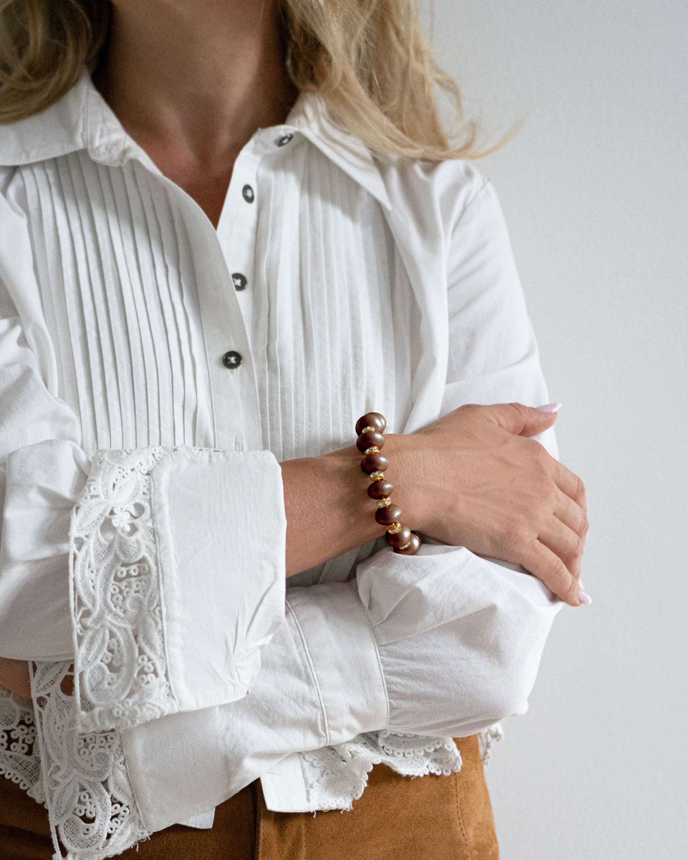 Please be aware of oils, makeup, perfumes, or other beauty products that may come in contact with your piece(s) during wear. Some parts of our creations cannot be cleaned, and traditional laundry/cleaning products or methods may cause damage.