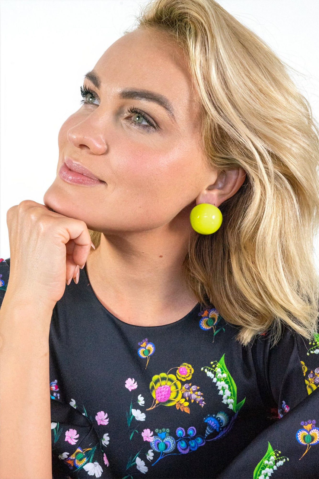 These statement studs are inspired by the Greek Goddess Gaia, mother of the earth and all life upon it. Gaia Earrings symbolize and honor the earth in a modern, memorable way. Her round shape and solid color give eye-catching contrast to clothing patterns and textures, so she pairs well with everything and brings the essence of life to every outfit. Representative of our planet, Gaia Earrings show the world how much you truly care for it.