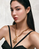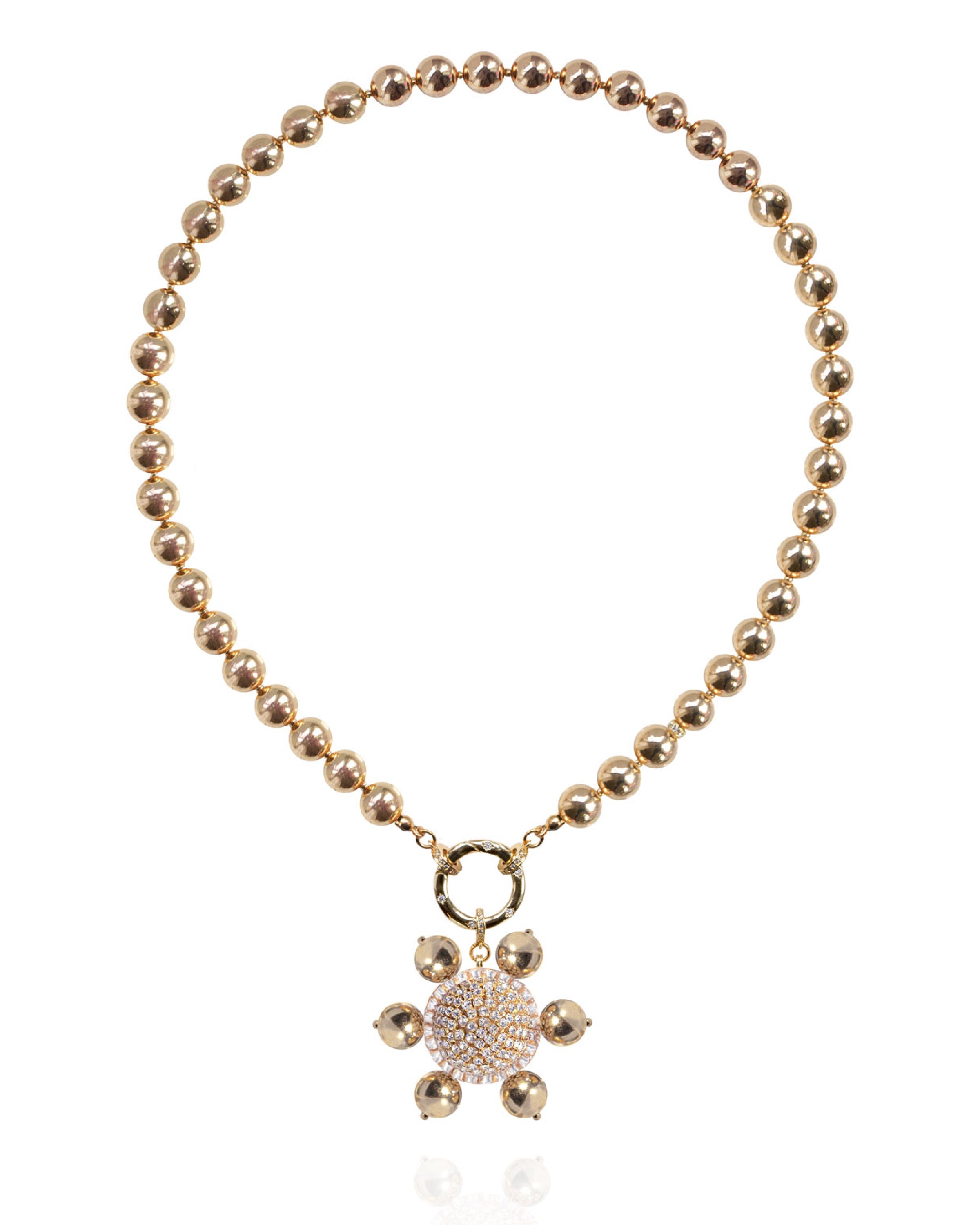 Classic glam is calling, darling. The Jolie Necklace is loud and lavish—a heavy hematite strand that feels like glamorous armor. At her center sits a starburst made of a wooden base bedecked with glittering rhinestones, punctuated by rays of shining beads in a color of your choice. Channel your inner Audrey and step out in the statement-making Jolie Necklace, and build a timeless collection with Jolie Earrings, the Jolie Lapel Pin and Jolie Barrettes.