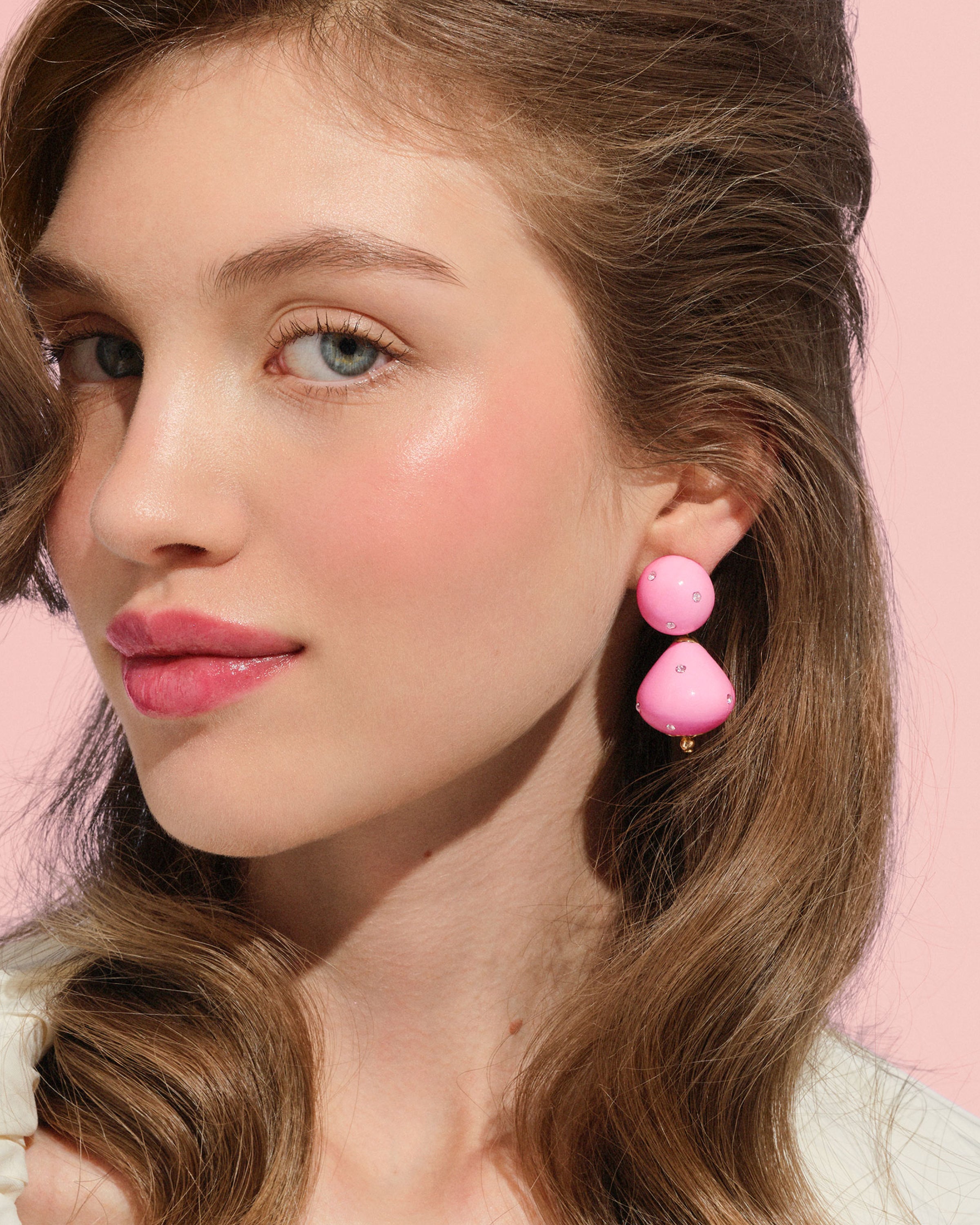 She’s round, radiant, and a little high-maintenance, in the best way. Nina stacks glossy, hand-painted beads into a sculptural drop finished with shimmering crystals. Flirty, bold, and built to be seen, from the front row, from across the room, from every angle. Warning: you will be noticed.