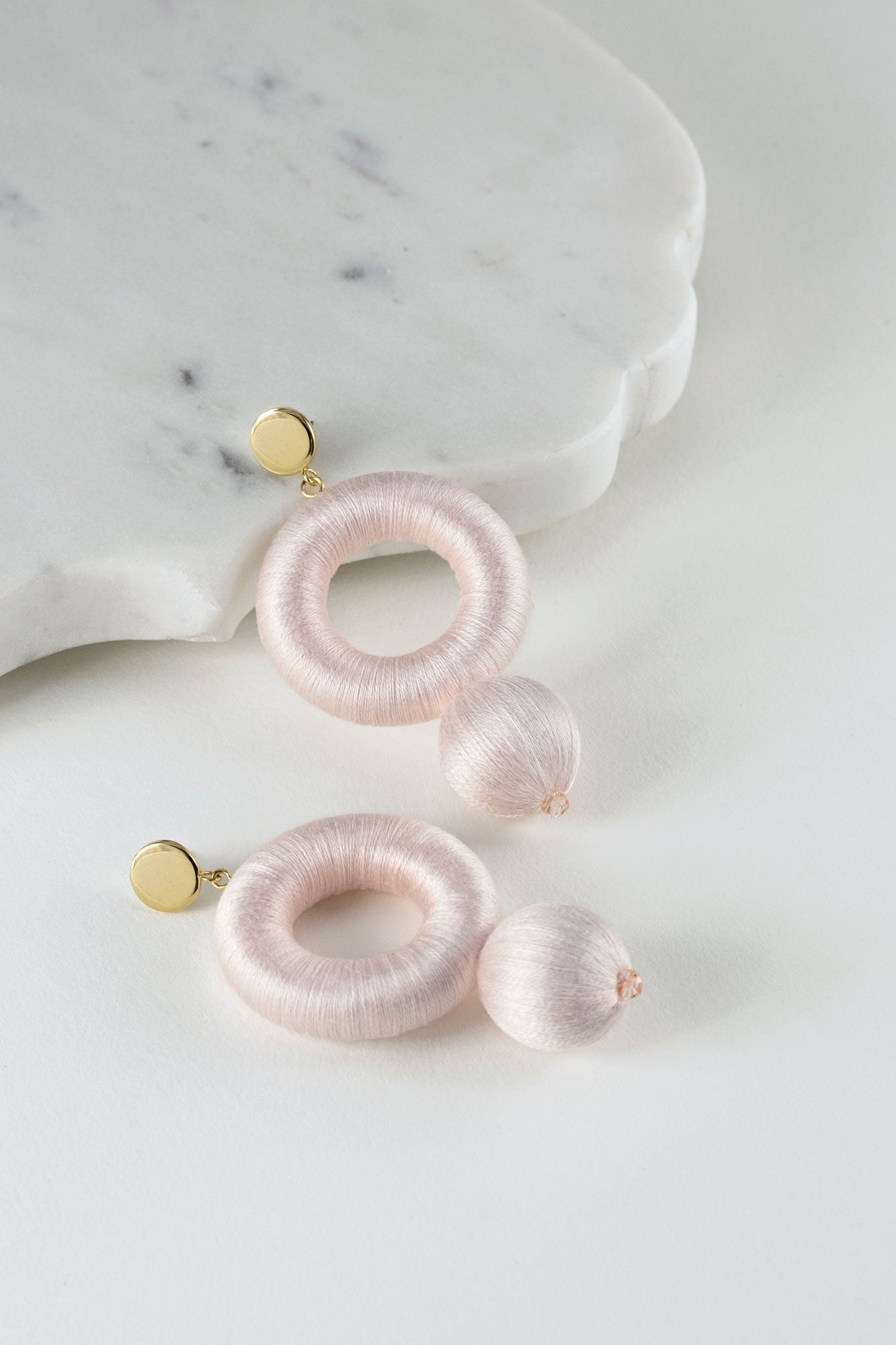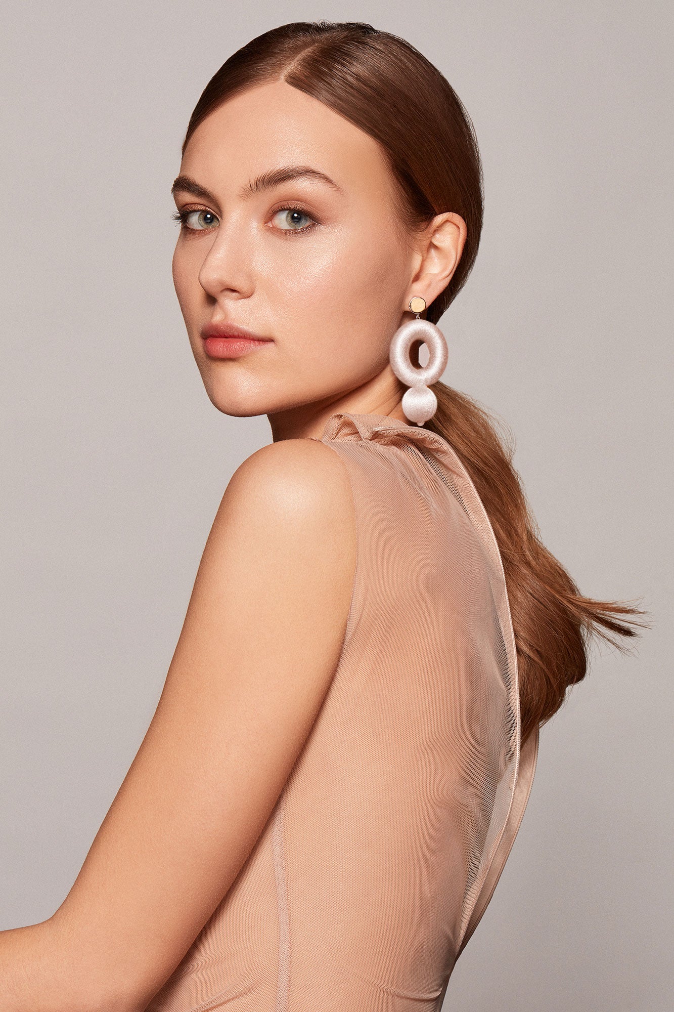 Archive – Final Sale ~ The clean curvature of our classic Saskia Earrings is wrapped in thread with a subtle shimmer, to catch the light in every movement. Handmade luxury in a style that’s both minimal and bold—and bound to become the pair you reach for again and again.