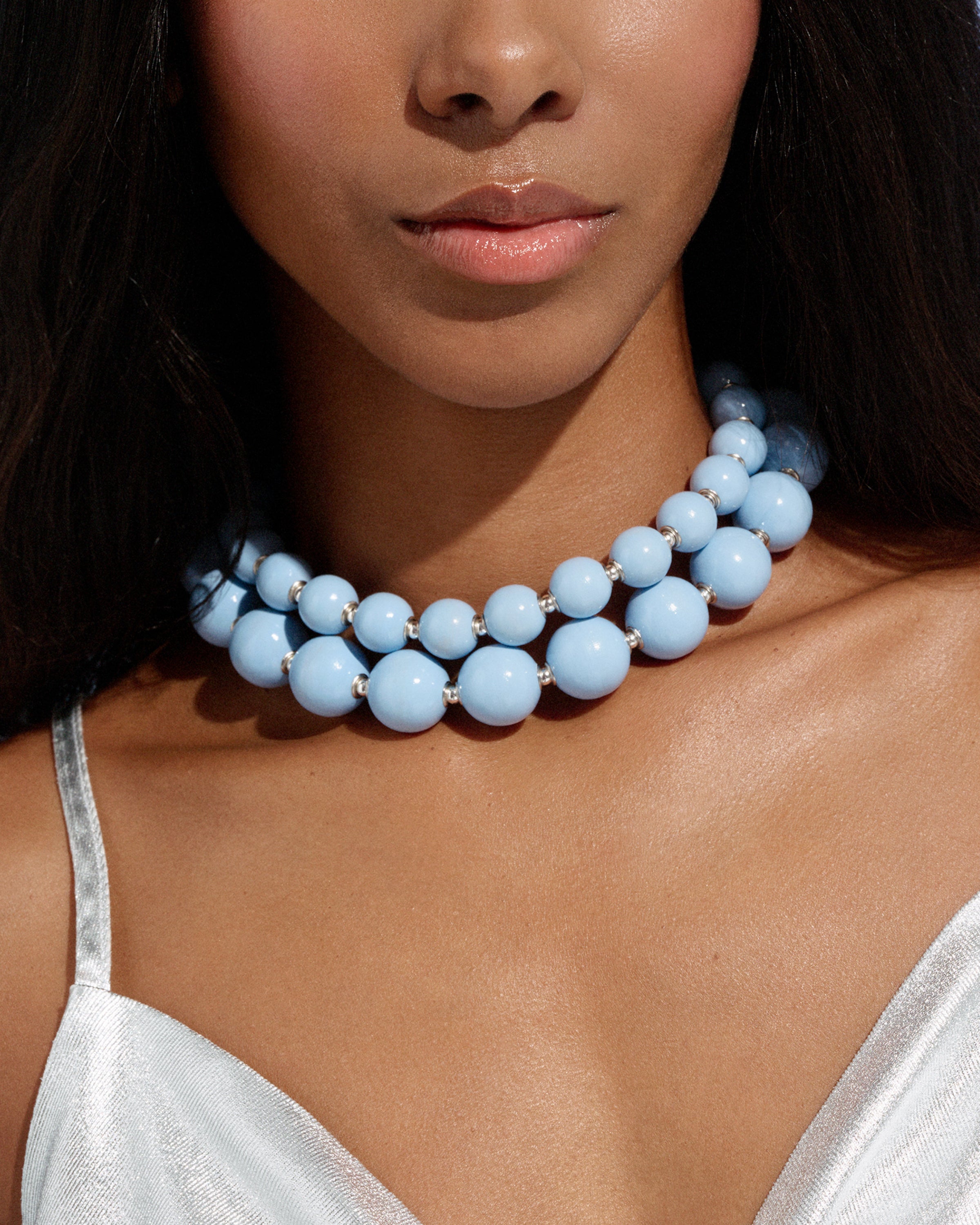 Sculptural, hand-painted, and endlessly versatile. Each Siena necklace is strung with individually painted beads, their glossy, liquid-like finish catching light with every move. Wear it solo for a sculptural statement, stack it for impact, or link two together into one long, luminous chain. Available individually or as a set.