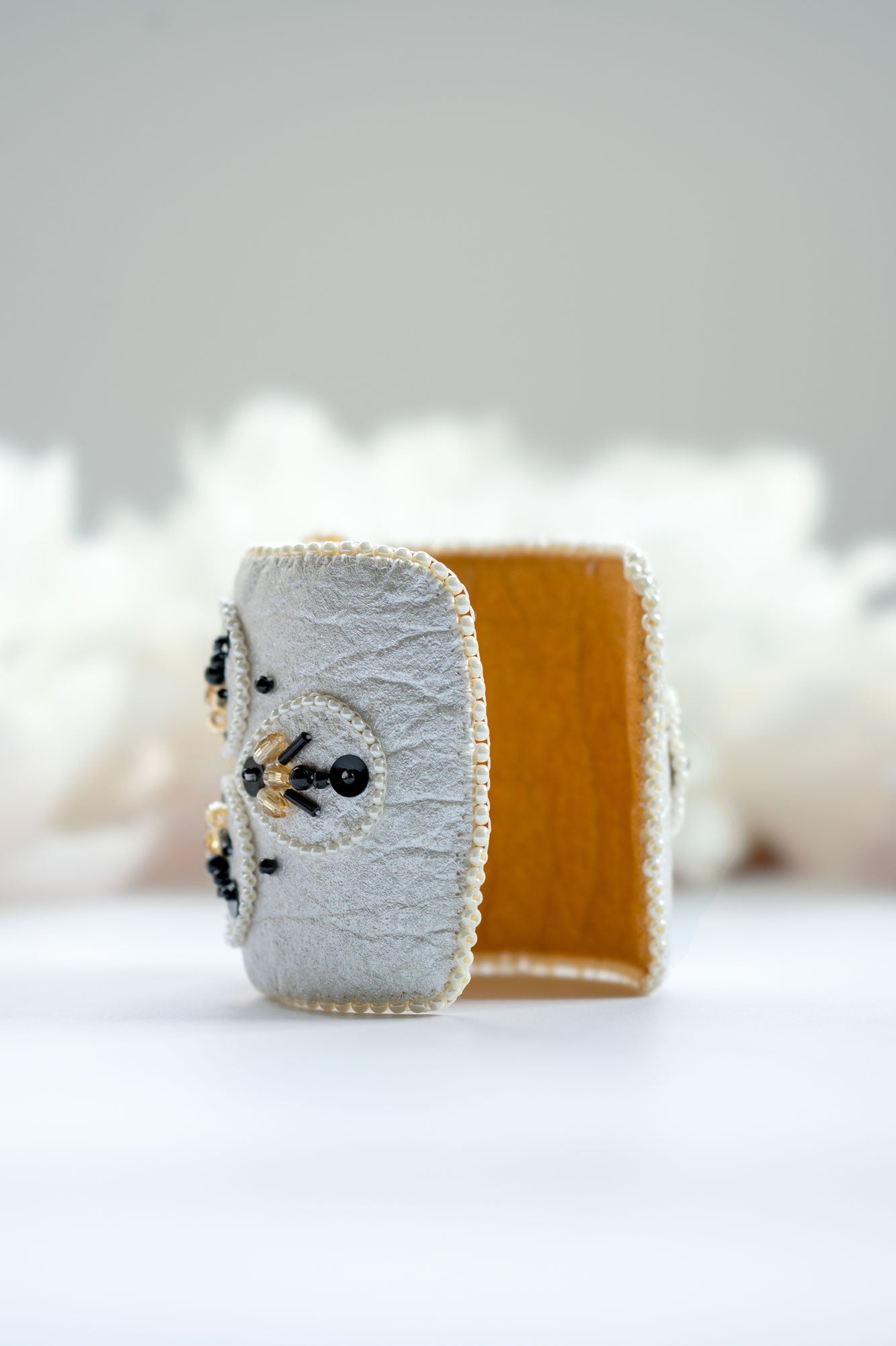 Please be aware of oils, makeup, perfumes, or other beauty products that may come in contact with your piece(s) during wear. Some parts of our creations cannot be cleaned, and traditional laundry/cleaning products or methods may cause damage.