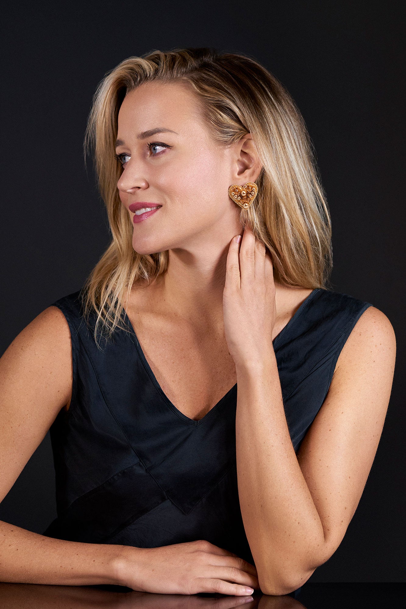 Feel free to flirt. Valentina Earrings are handcrafted with upcycled beading and glass crystals, creating a vintage valentine subtle enough for everyday wear—with the perfect amount of wink.